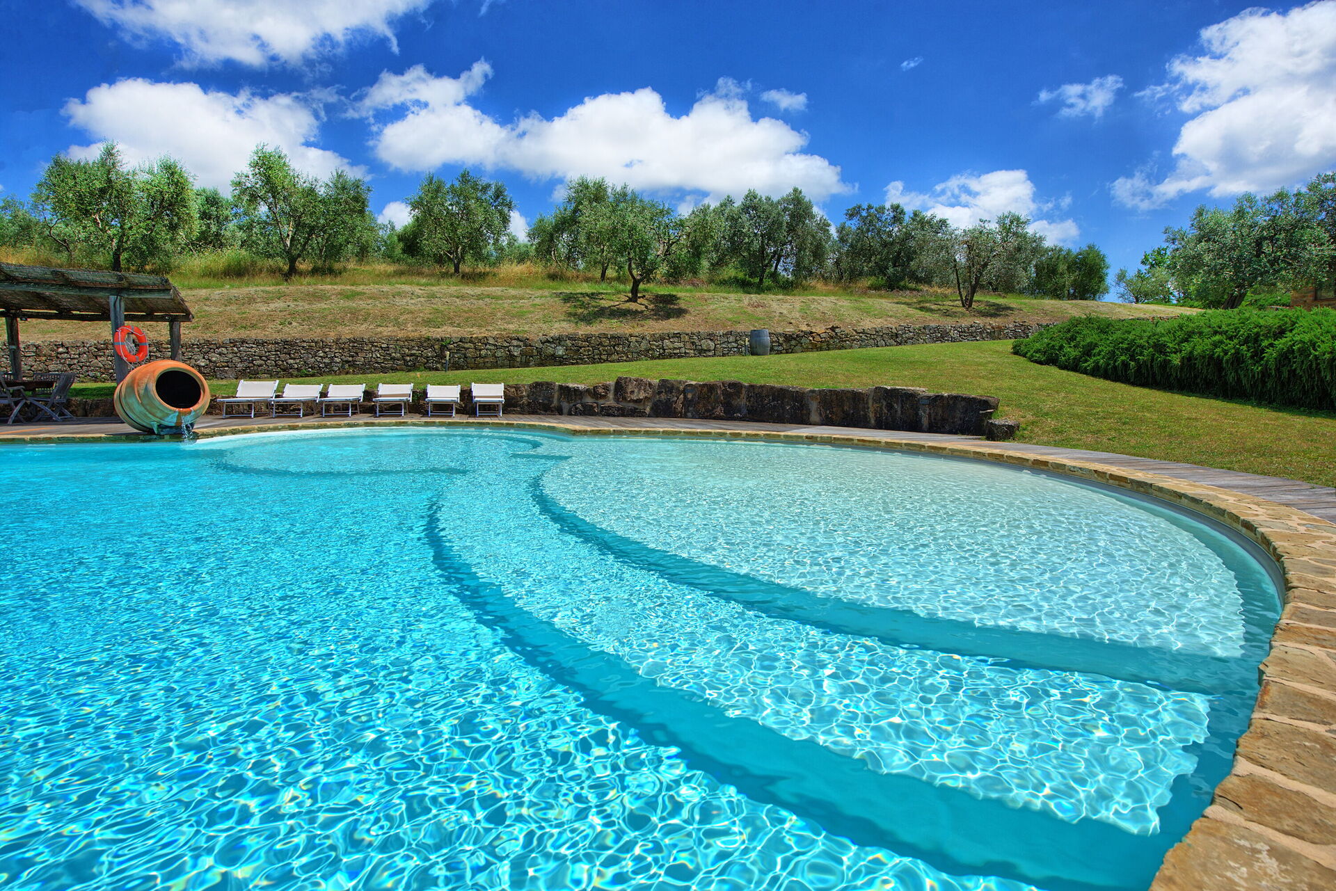 The pool is a wonderful design for younger children but needs more significant shade.