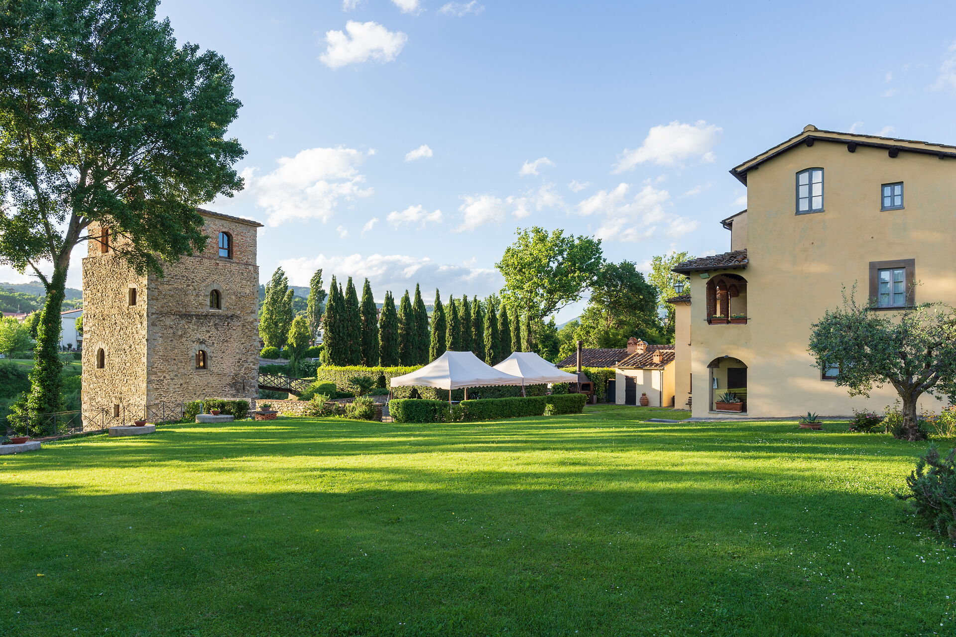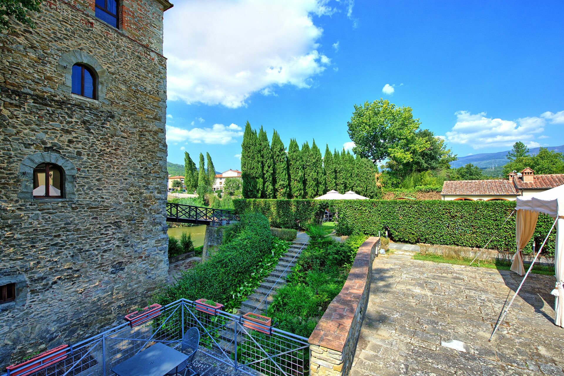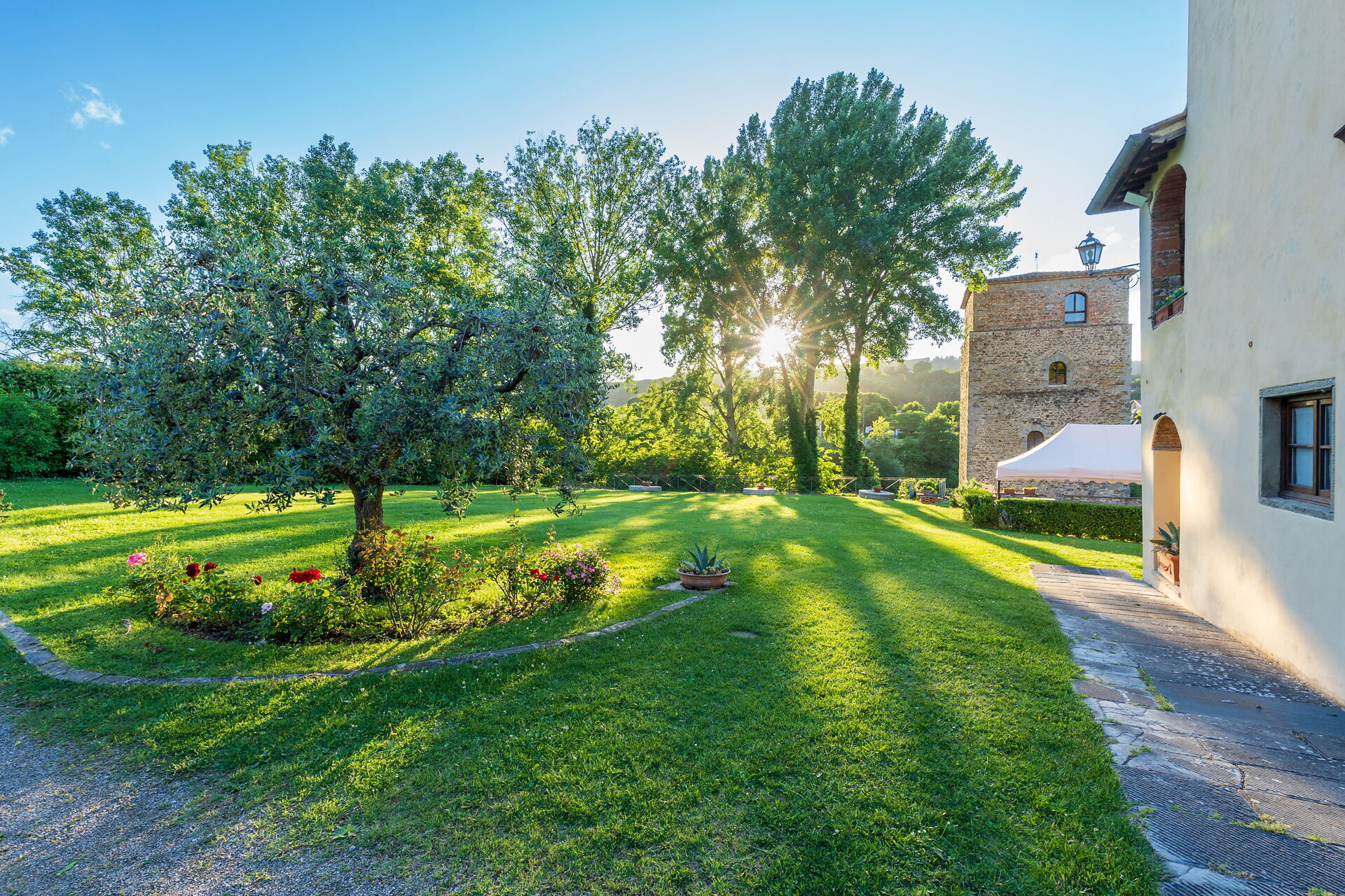 Der Garten ist teilweise gepflastert und hat eine große Wiese ebenso wie hohen und blühenden Bäume. Der Arno , dessen Quelle 50 km entfernt ist, ist vom Garten aus zu Fuß erreichbar und bietet eine wunderschöne Landschaft.