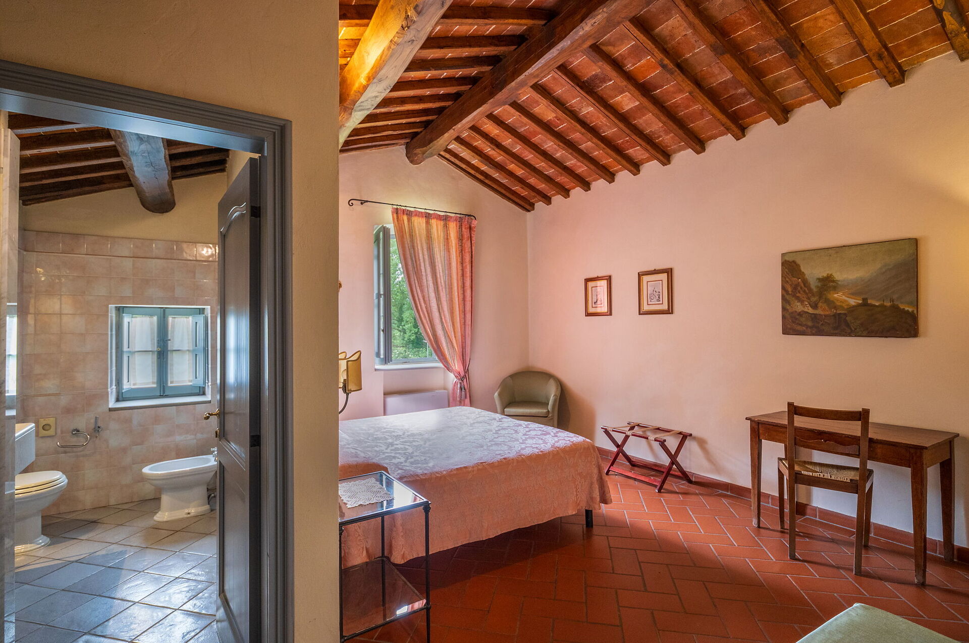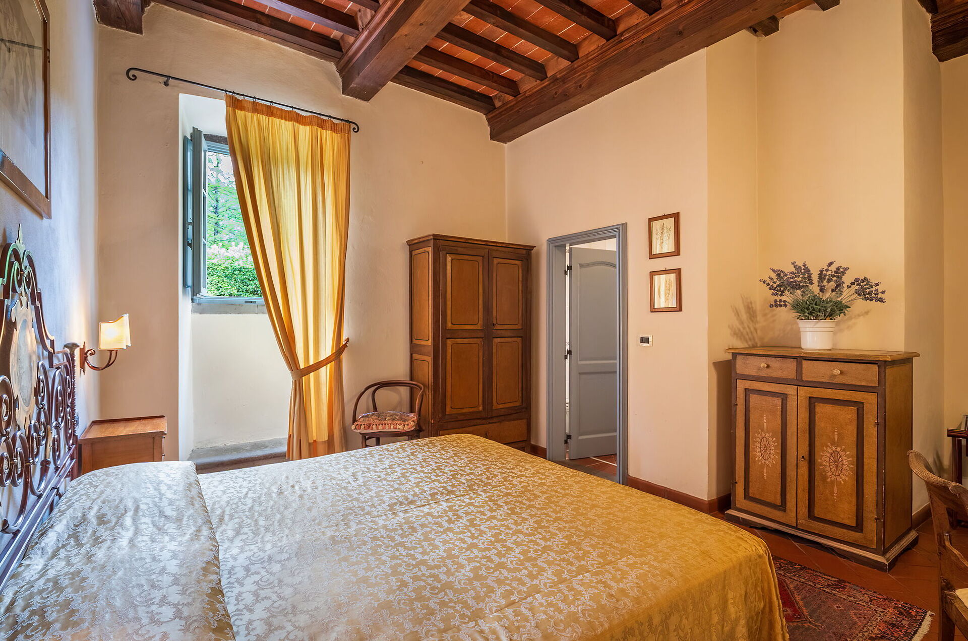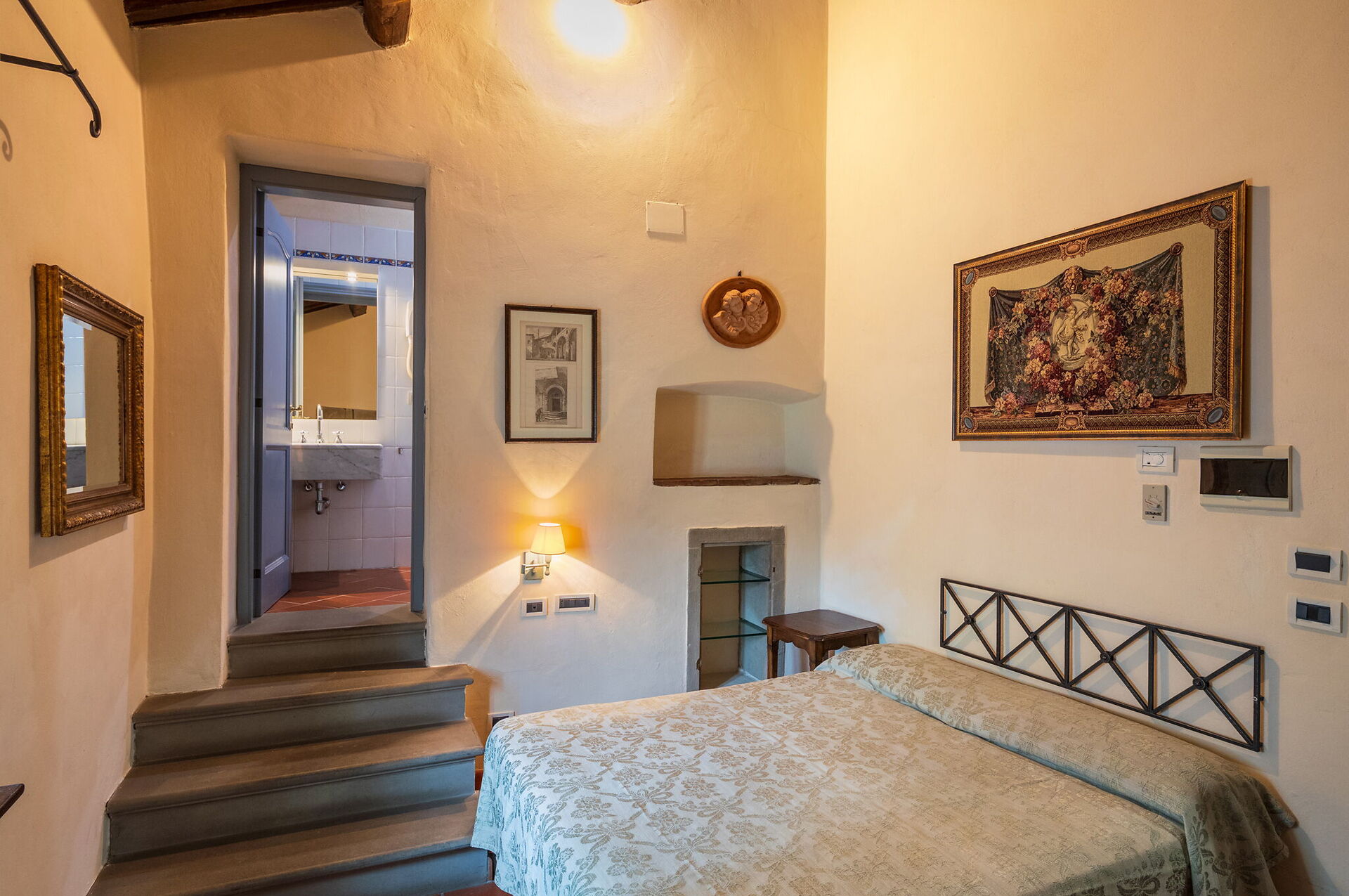 Erdgeschoss: Suite von außen über eine Terrasse mit Blick auf den Fluss Arno zugänglich. Die Suite besteht aus einem Schlafzimmer mit Doppelbett und eigenem Bad mit Badewanne und Dusche
