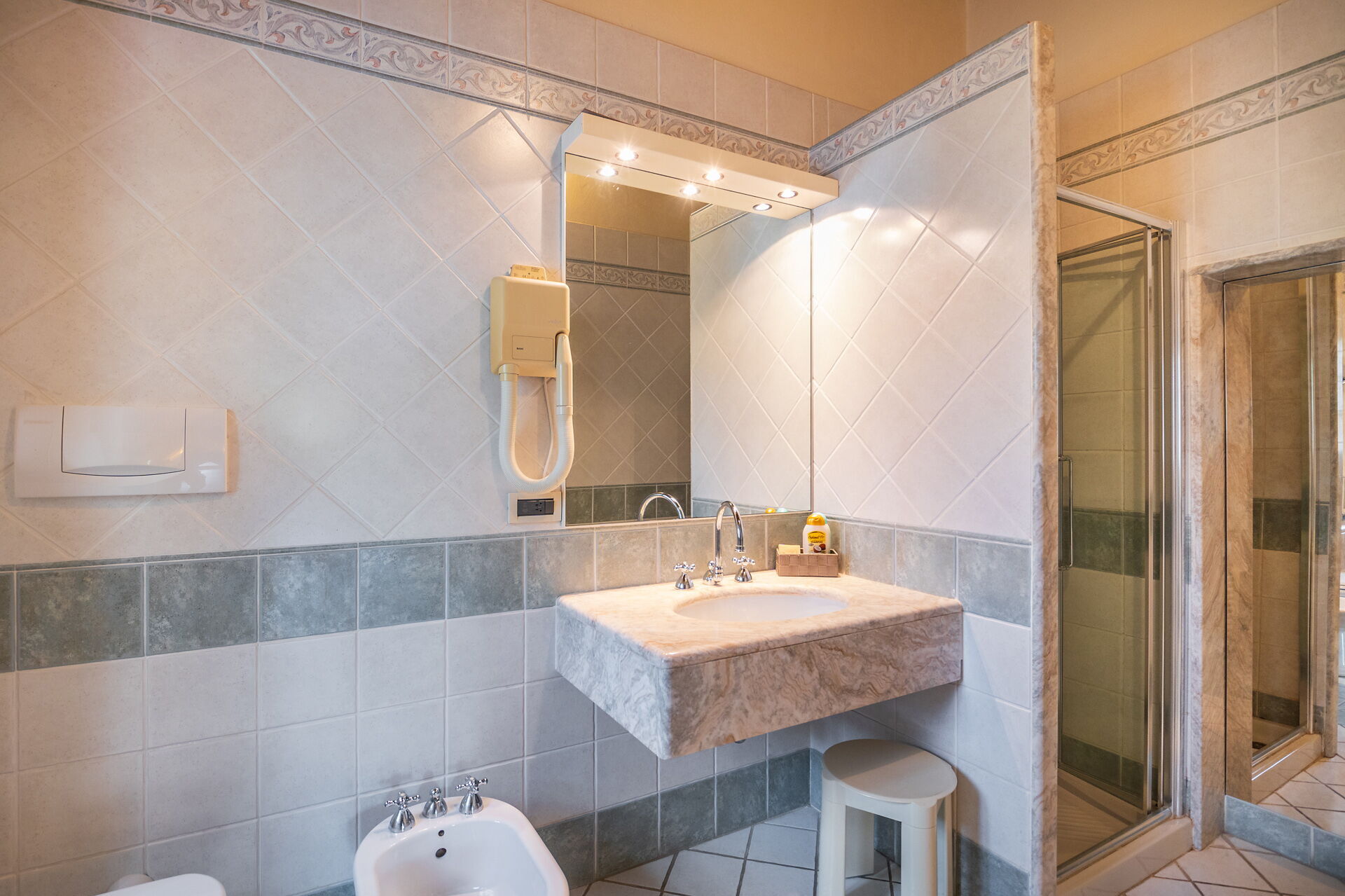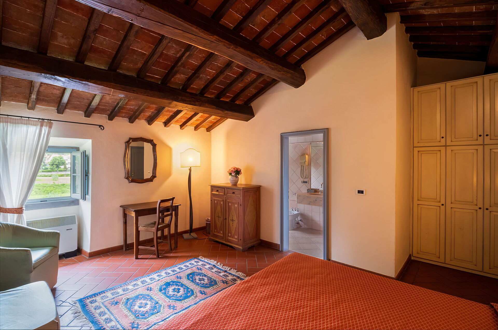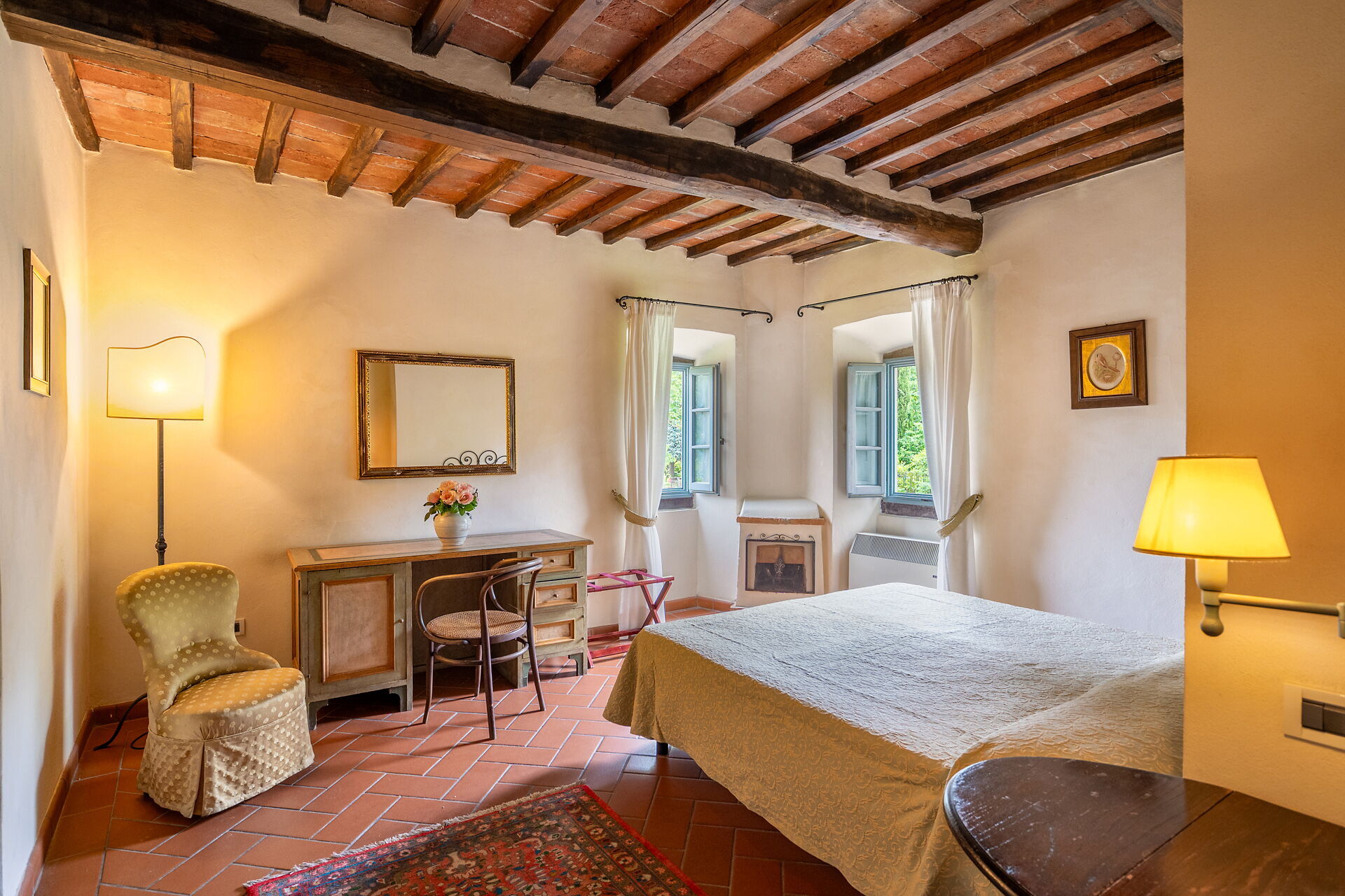 Erdgeschoss: Suite von außen über eine Terrasse mit Blick auf den Fluss Arno zugänglich. Die Suite besteht aus einem Schlafzimmer mit Doppelbett und eigenem Bad mit Badewanne und Dusche