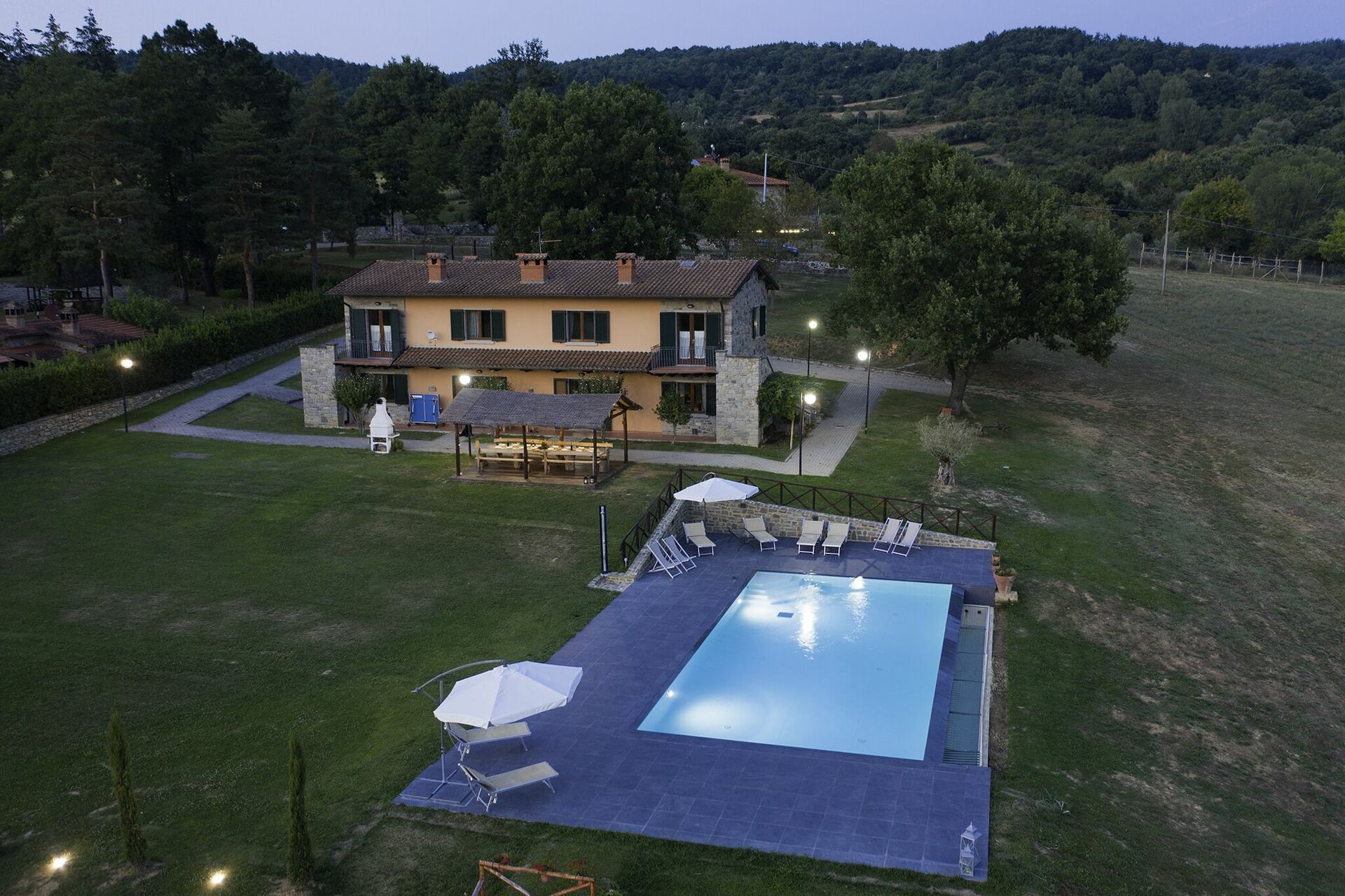 È l'ideale per poter condividere in gruppo una vacanza, e godere delle comodità sia dentro che fuori casa. La piscina è ottima e la posizione paesaggisticamente è molto aperta, lo sguardo si perde nelle montagne Casentinesi con il castello di Poppi sullo sfondo, e la notte si possono ammirare le stelle.