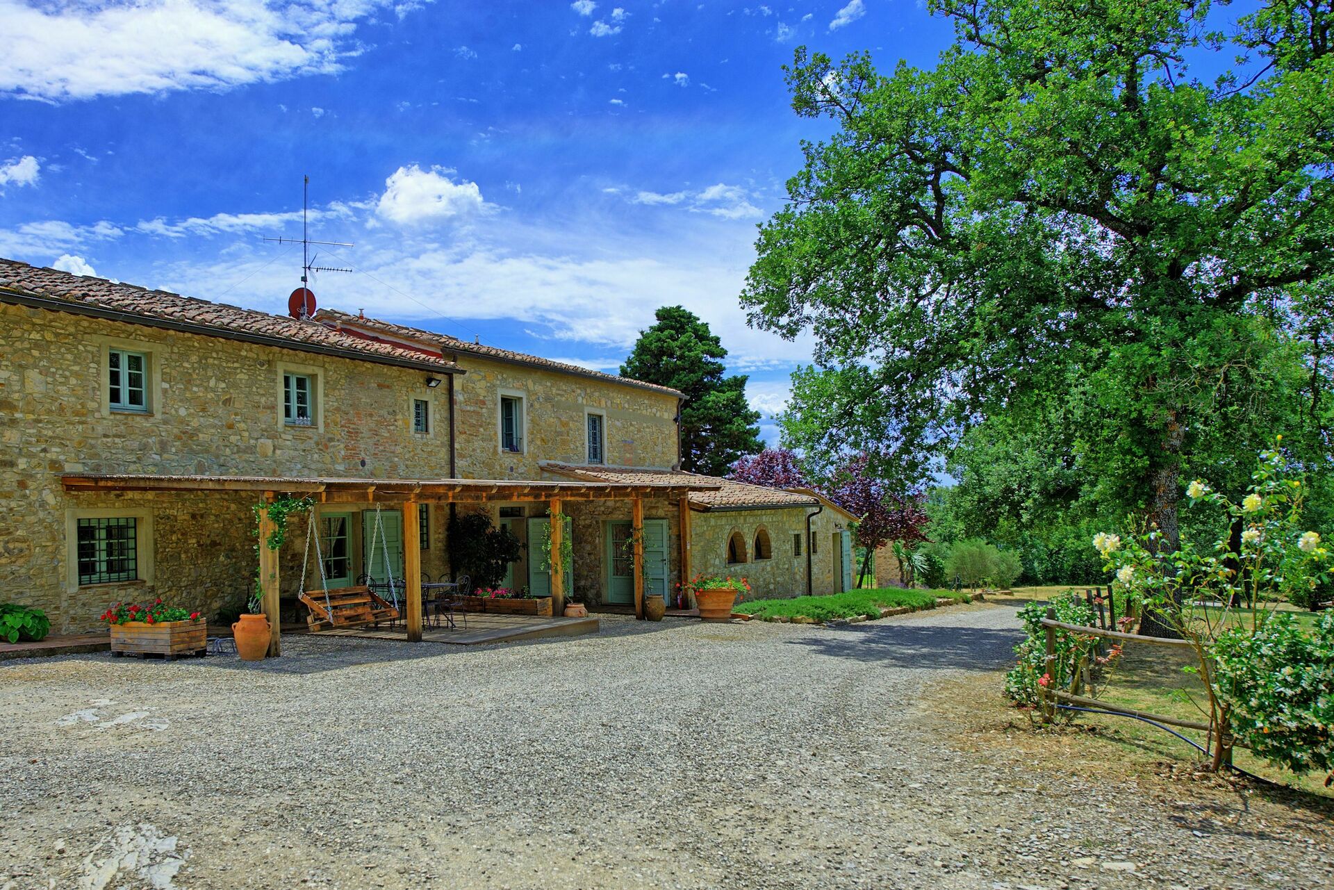 Das Landgut umfasst drei gemütliche Ferienwohnungen, die komfortabel und geschmackvoll eingerichtet sind. Umgeben von Weinbergen und Olivenhainen haben Gäste die Möglichkeit, den Chianti Classico Wein sowie hochwertiges kaltgepresstes Olivenöl zu verkosten und vor Ort zu erwerben.