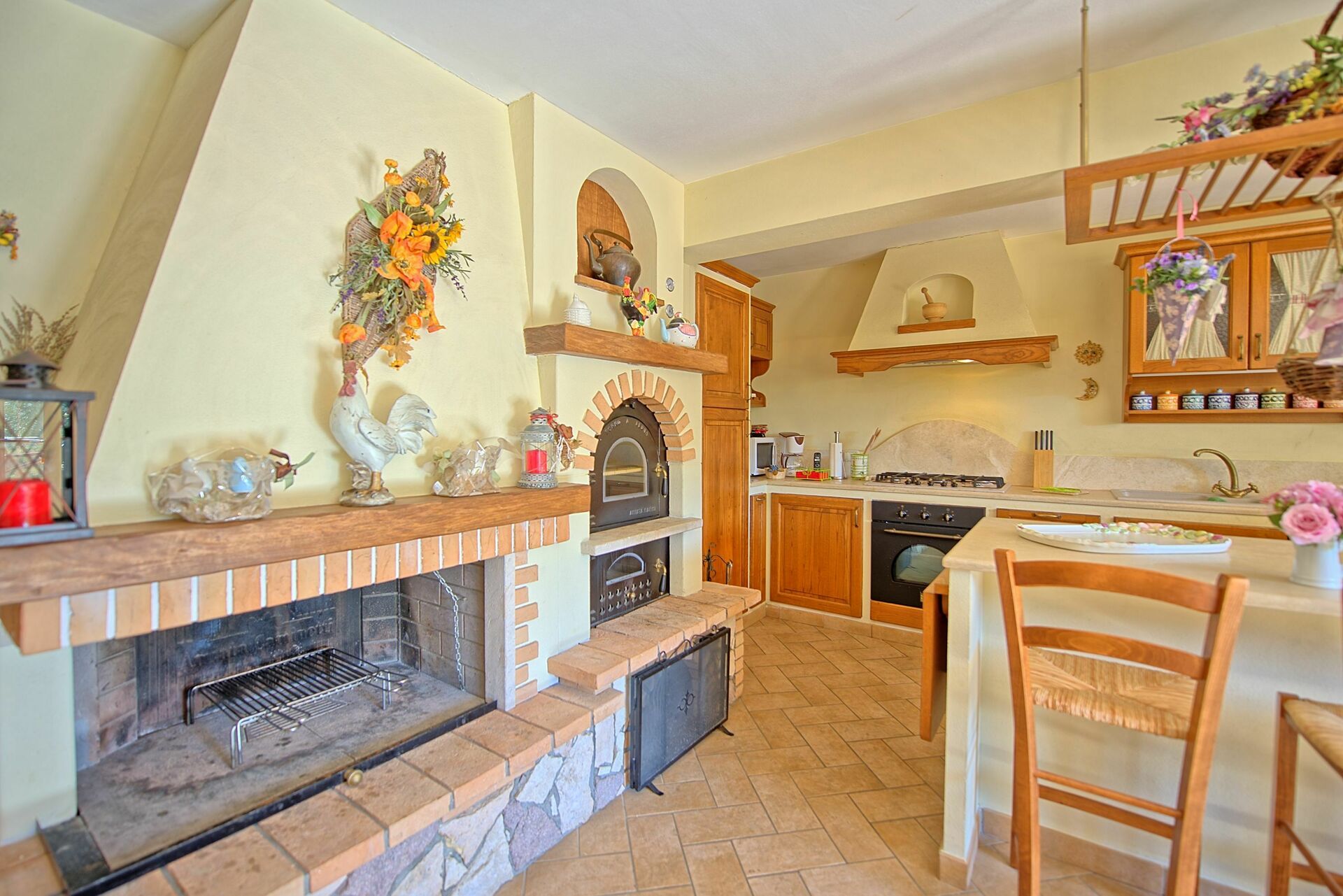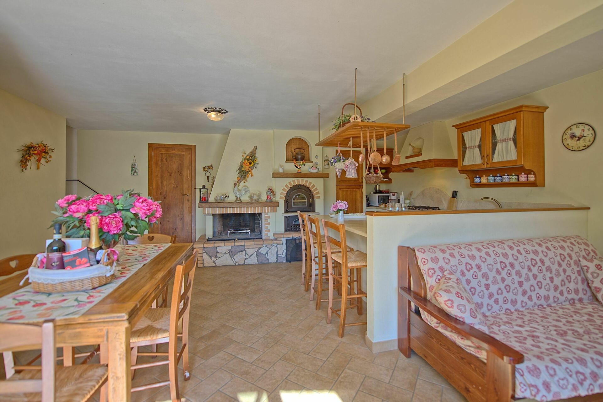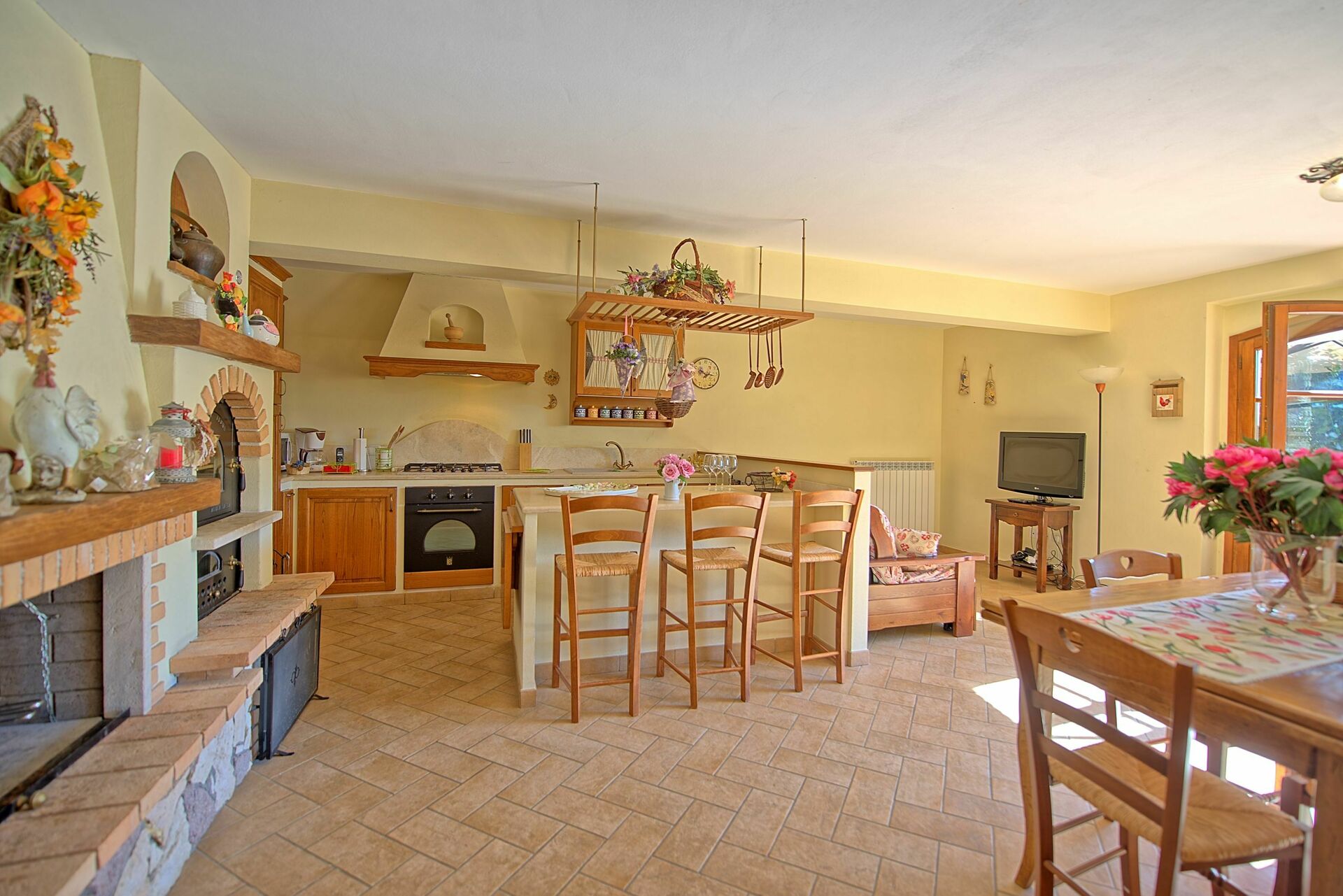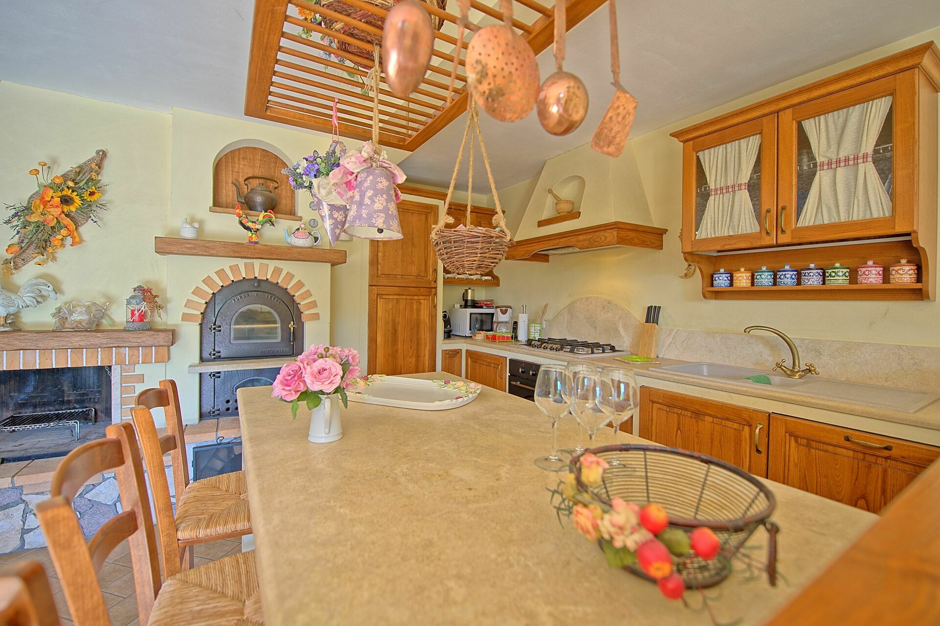 Die Inneneinrichtung ist geschmackvoll und mit typischen Materialien der Toskana gestaltet. Ein einladender Kamin schafft in den kälteren Monaten eine unglaublich gemütliche Atmosphäre.