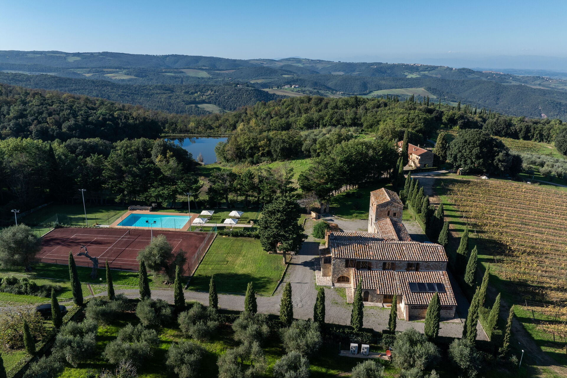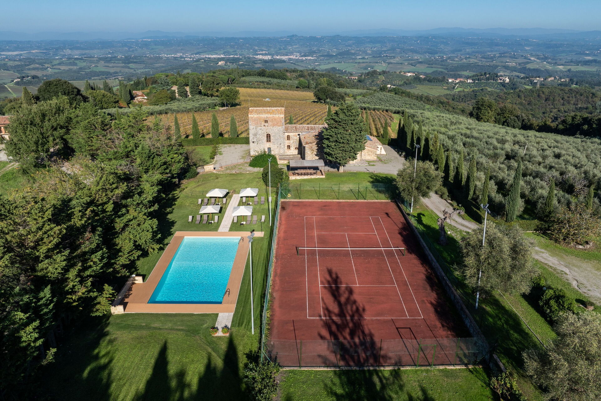 Our family of 10 just spent 7 weeks at Villa Simone. It was an outstanding villa, private, gated and quiet. Modern rooms, spacious and clean. It had everything we needed for our vacation. The views of the Tuscan valley from the Villa were spectacular. The grandchildren loved the swimming pool, tennis court, billiard room and spa. The adults loved the Panizzi Winery within walking distance. We will definitely rent the Villa again for a Tuscan vacation!