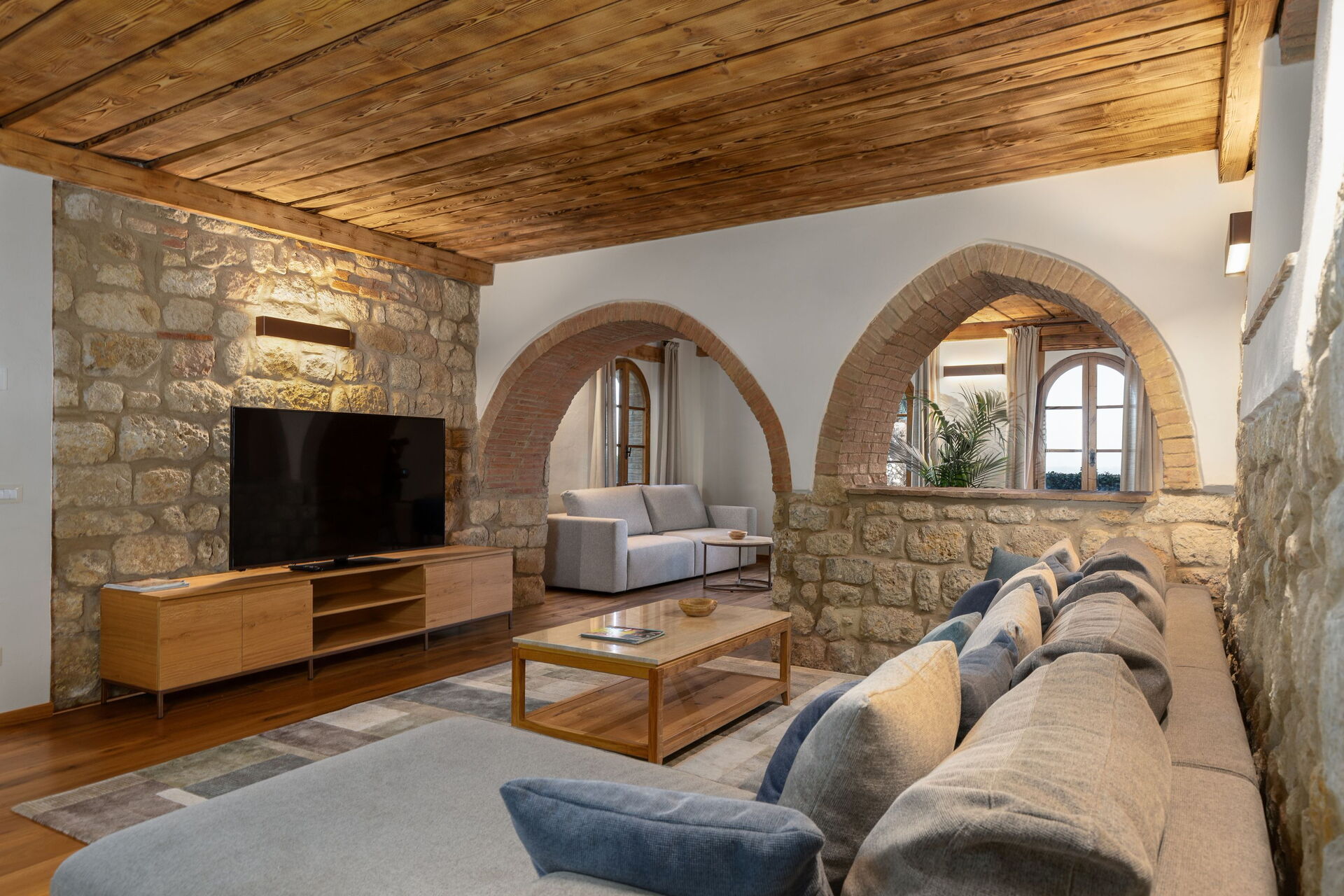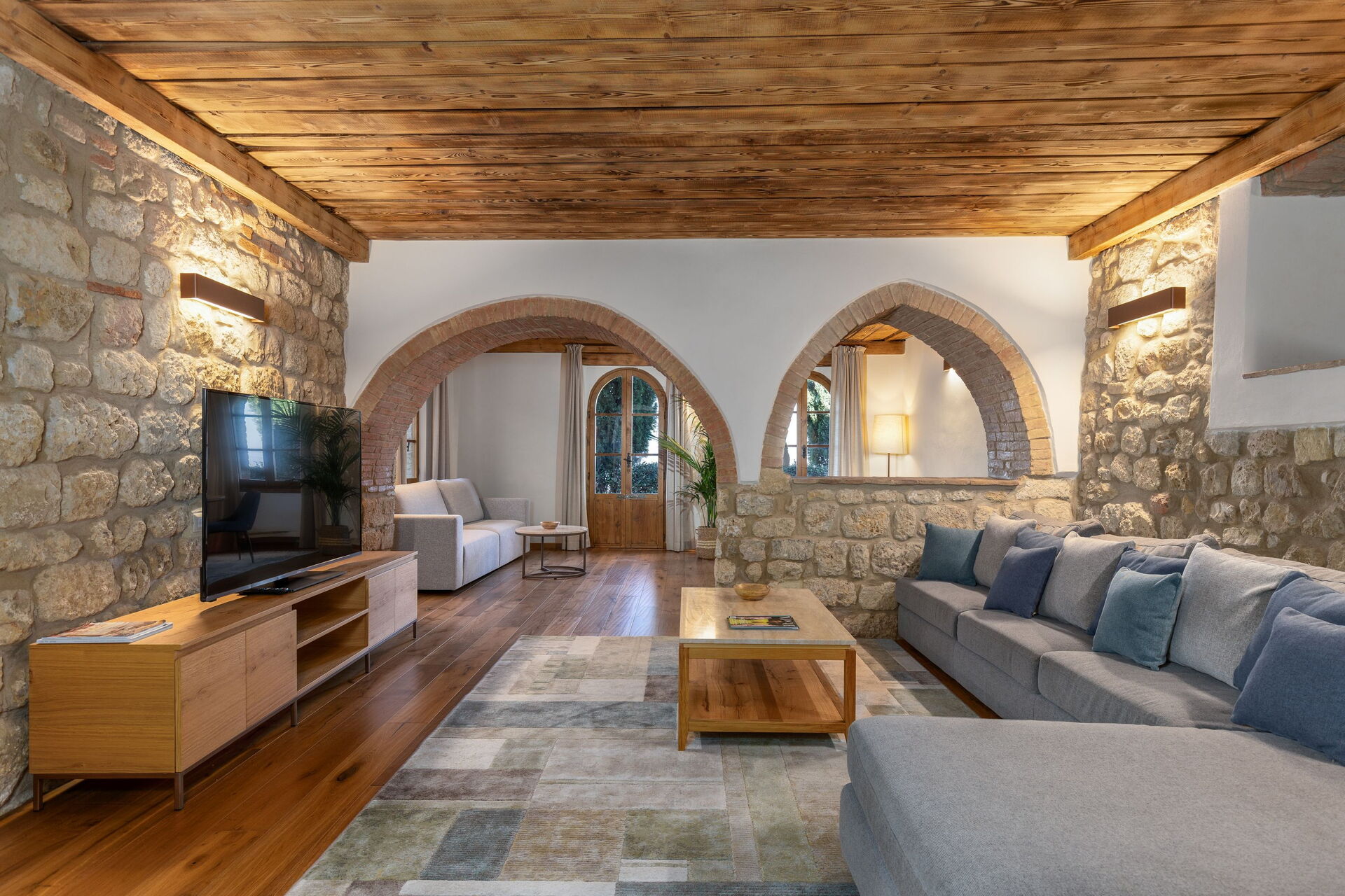 Die Villa erfuhr 2023 eine fachgerechte Renovierung, wobei die ursprünglichen architektonischen Merkmale erhalten blieben, und wurde in ein luxuriöses Landhaus mit sämtlichem Komfort umgewandelt. Die Einrichtung ist äußerst einladend, und in den stilvoll gestalteten Räumen finden bis zu 14 Personen in 7 schönen Schlafzimmern Platz.