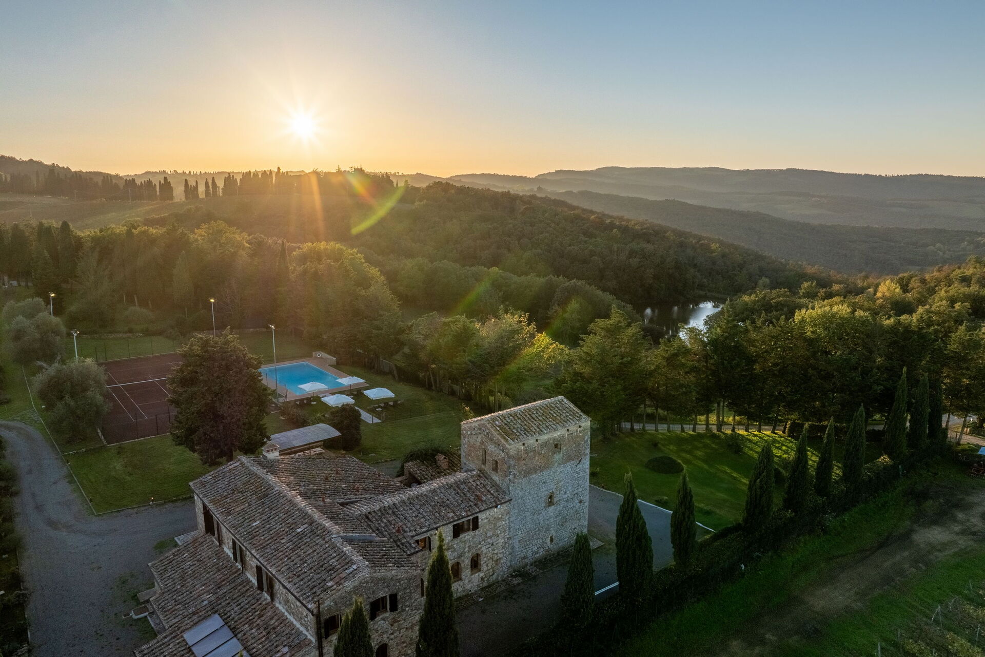 Villa Simone ist eine kürzlich renovierte Luxusvilla aus dem 15. Jahrhundert, die um einen tausendjährigen Wachturm erbaut wurde. Sie liegt in ruhiger Panoramalage auf den Chianti-Hügeln in der Toskana, in der Nähe der mittelalterlichen Stadt San Gimignano.