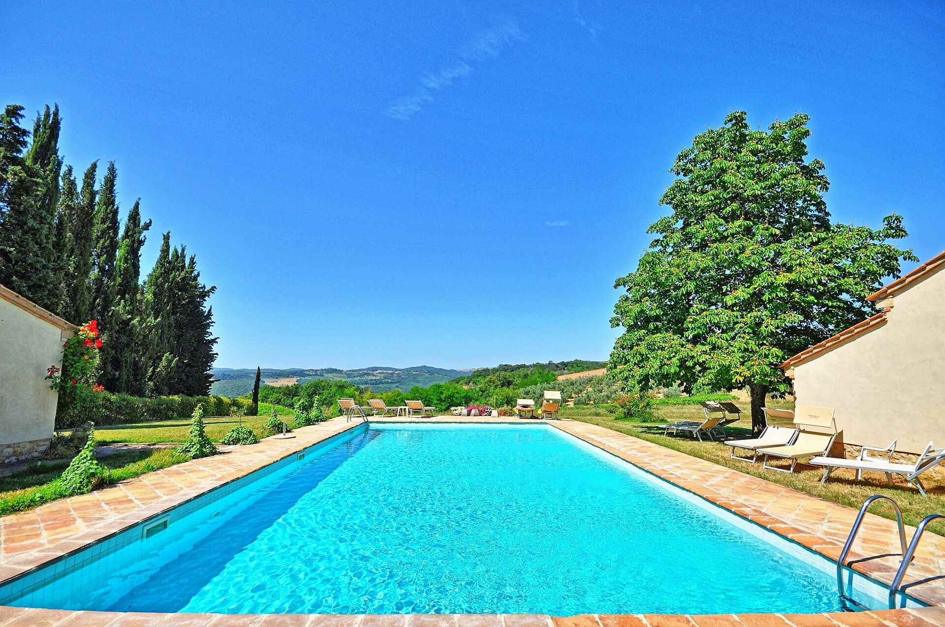 Super villa dans les colines toscanes. Vous séjourenez dans une habitation typique (mur en pierre etc). Vue imprenable sur la campagne environnante (vignes, champ oliviers, ville de San gimignano). La propiété est entourée d'un jardin verdoyant calme et paisible. La piscine est grande et très bien aménagée, la vue y est magnifique également. Nous avons passé quelques jours magiques. La route pour arriver au logement nécessite un bon conducteur mais ajoute qqch au côté typique et rustique de l'endroit. Charmant, je recommande!