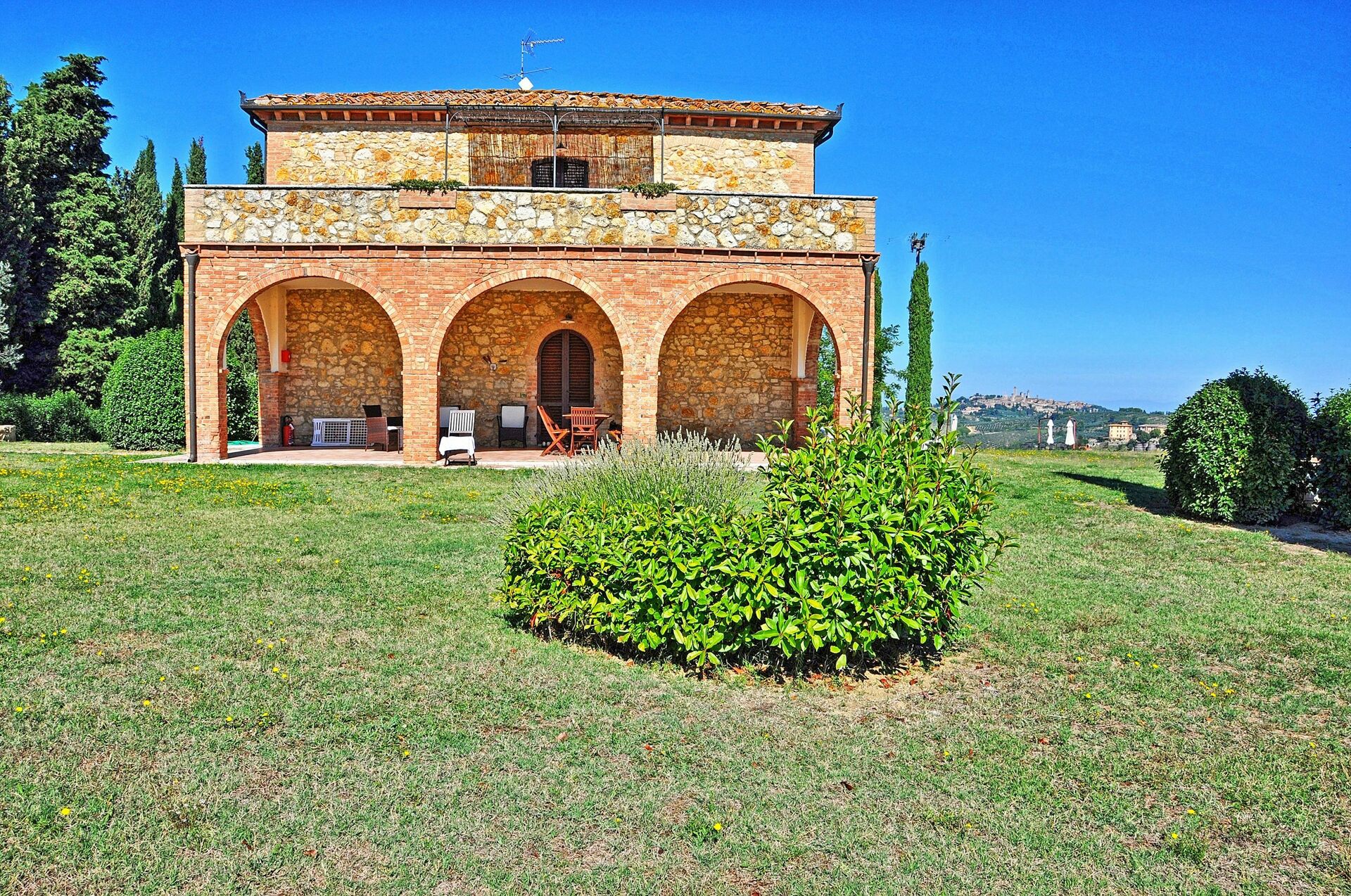 The villa is in a great location with a stunning view of San Gimignano, a vineyard and olive trees. The pool has a great view too and was very refreshing after a long day of sightseeing and shopping . These units are ideal for families, and or couples. They are basic, clean and are not far from the town. The driveway was a little bumpy but that added to the fun of the vacation.