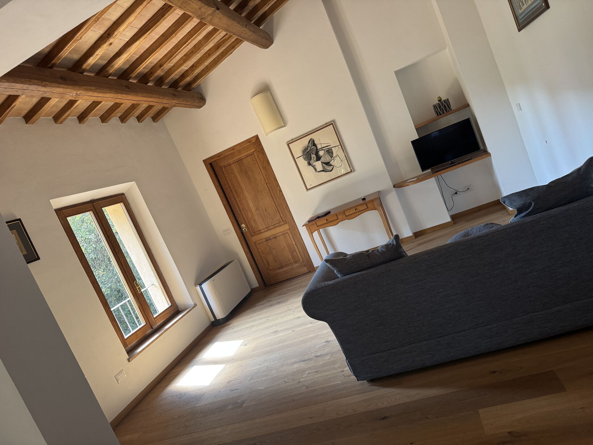 Der Besitz umfasst ein Haupthaus mit drei Schlafzimmern sowie ein kleines Apartment mit einem Schlafzimmer, die nur gemeinsam gebucht werden können. Die kürzlich renovierte Villa besticht durch ihre komfortable Ausstattung: Alle vier Schlafzimmer sind klimatisiert und fünf Badezimmer mit Duschen sorgen für zusätzlichen Komfort. Die im rustikalen Stil gestalteten Räume schaffen eine einladende Atmosphäre, die den Gästen ein authentisches Urlaubserlebnis in den malerischen Hügeln ermöglicht.