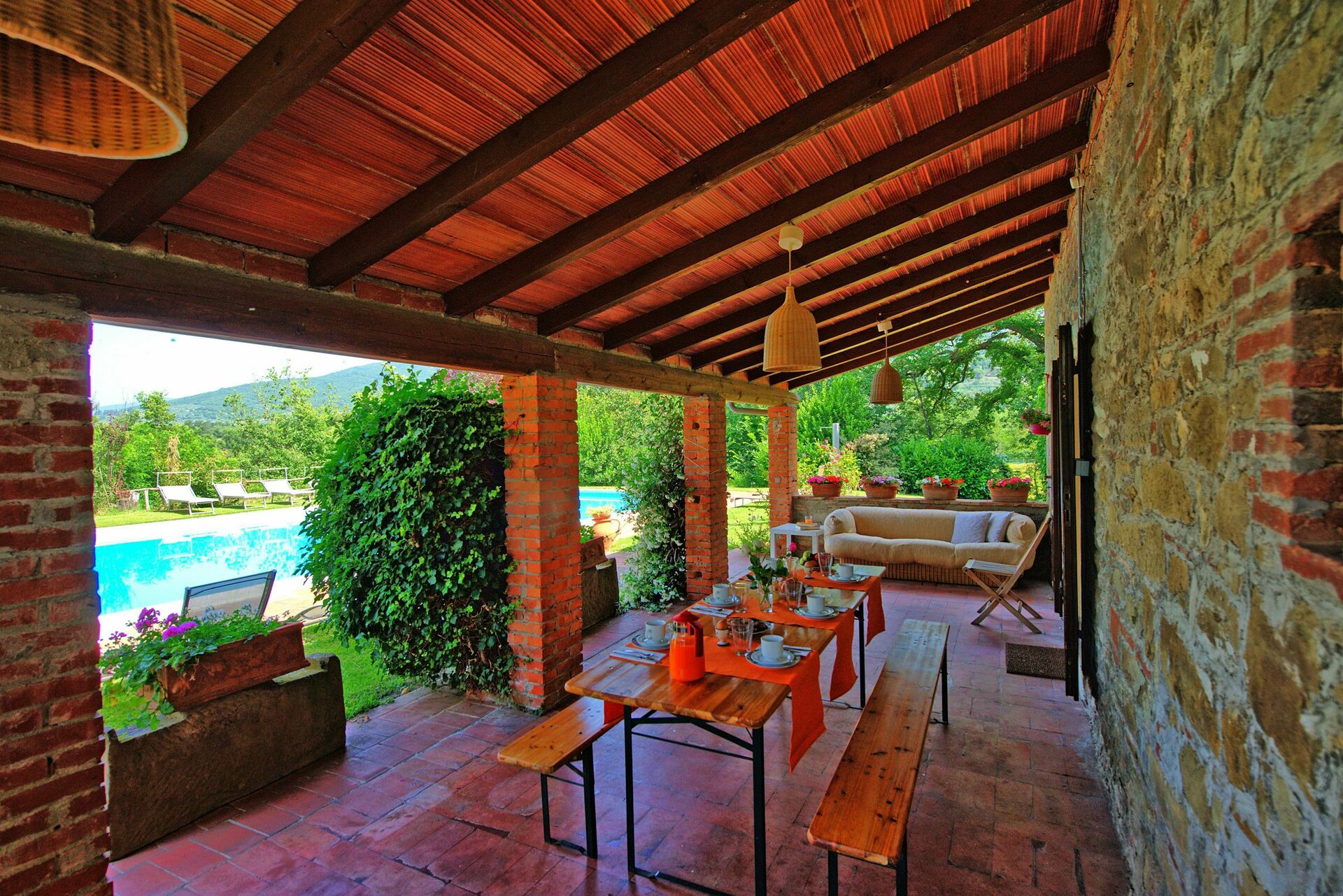 Das schöne renovierte alte Bauernhaus mit privatem Schwimmbad hat seine Ursprünge im 16.Jahrhundert. Die alten, charakteristischen Merkmale des Hauses, mit Balkendecken, Gewölben und Terracottafussböden sind erhalten worden. Die Einrichtung ist elegant und mit allem modernen Komfort ausgestattet und teilweise mit antiken Möbeln eingerichtet. Vor dem Haus befindet sich eine Veranda, die mit Tisch, Stühlen und Grill ausgestattet ist und sich hervorragend eignet, um draussen essen zu können.