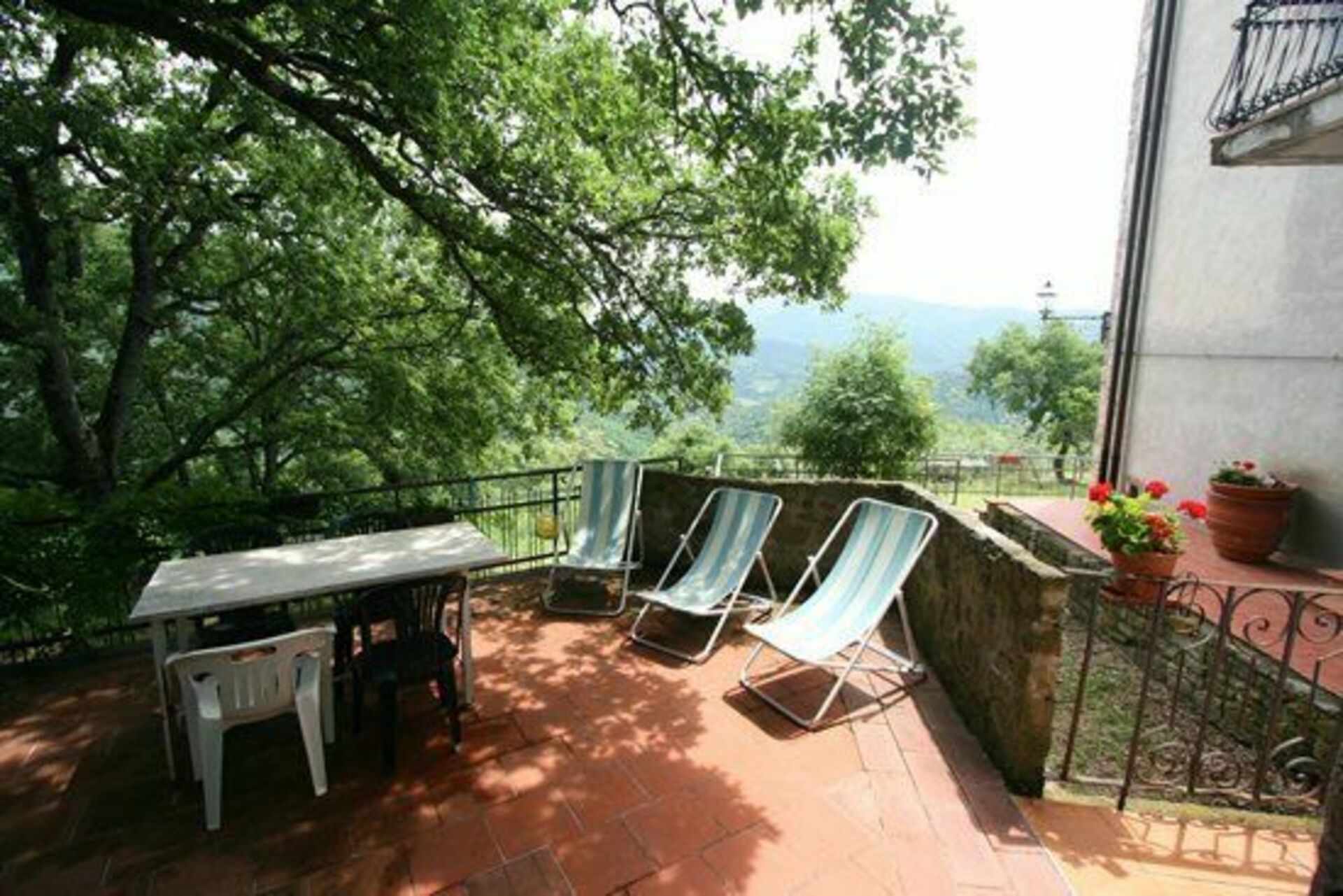 Private Terrasse mit Gartenmöbeln.