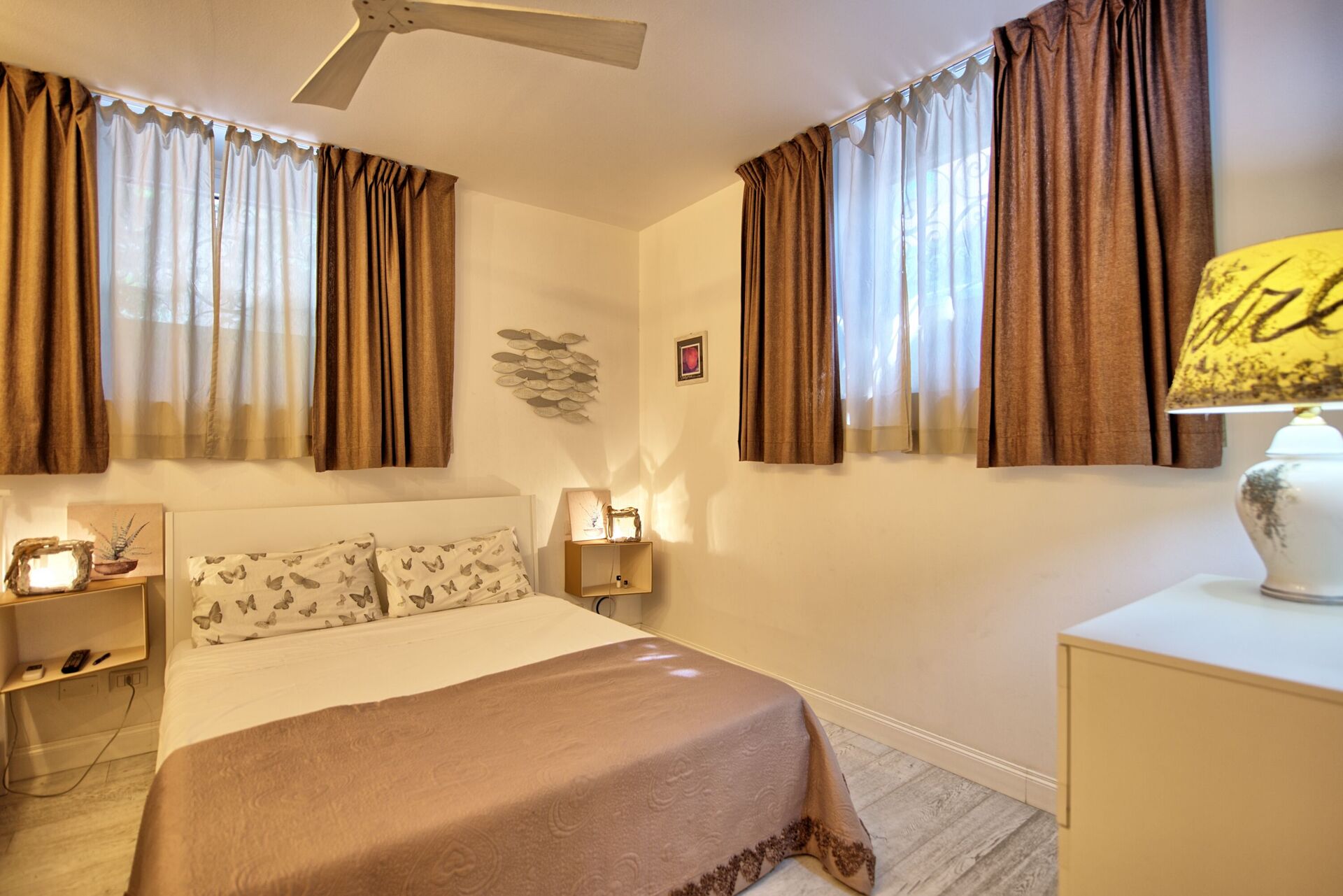 Die beiden Schlafzimmer und der Essbereich verfügen über Deckenventilatoren.