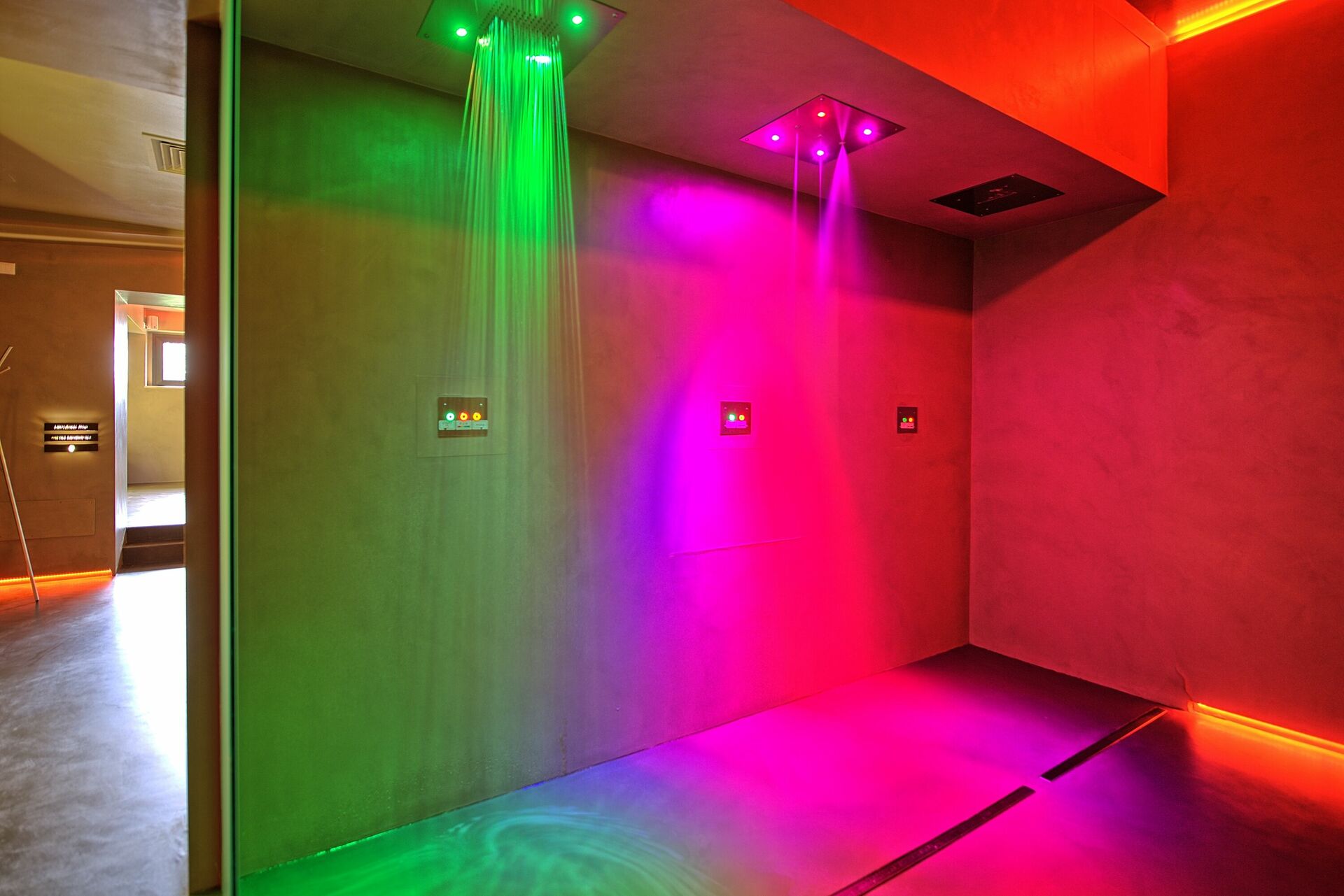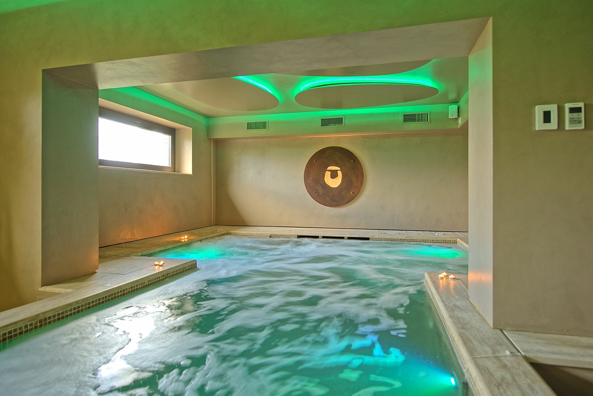 - Wellnessbereich bestehend aus einem Fitness-Studio mit 3 Technogym- Geräten (Cyclette, Ellittica und Gewichte), Ruhebereich, 3 Sensor - Duschen, Finnische Sauna, Türkisches Bad, gewärmtes Schwimmbad mit Whirlpool-Bereich und Gegenstromanlage. Der Wellnessbereich bietet folgende Öffnungszeiten an: von 15:00 - 19:00