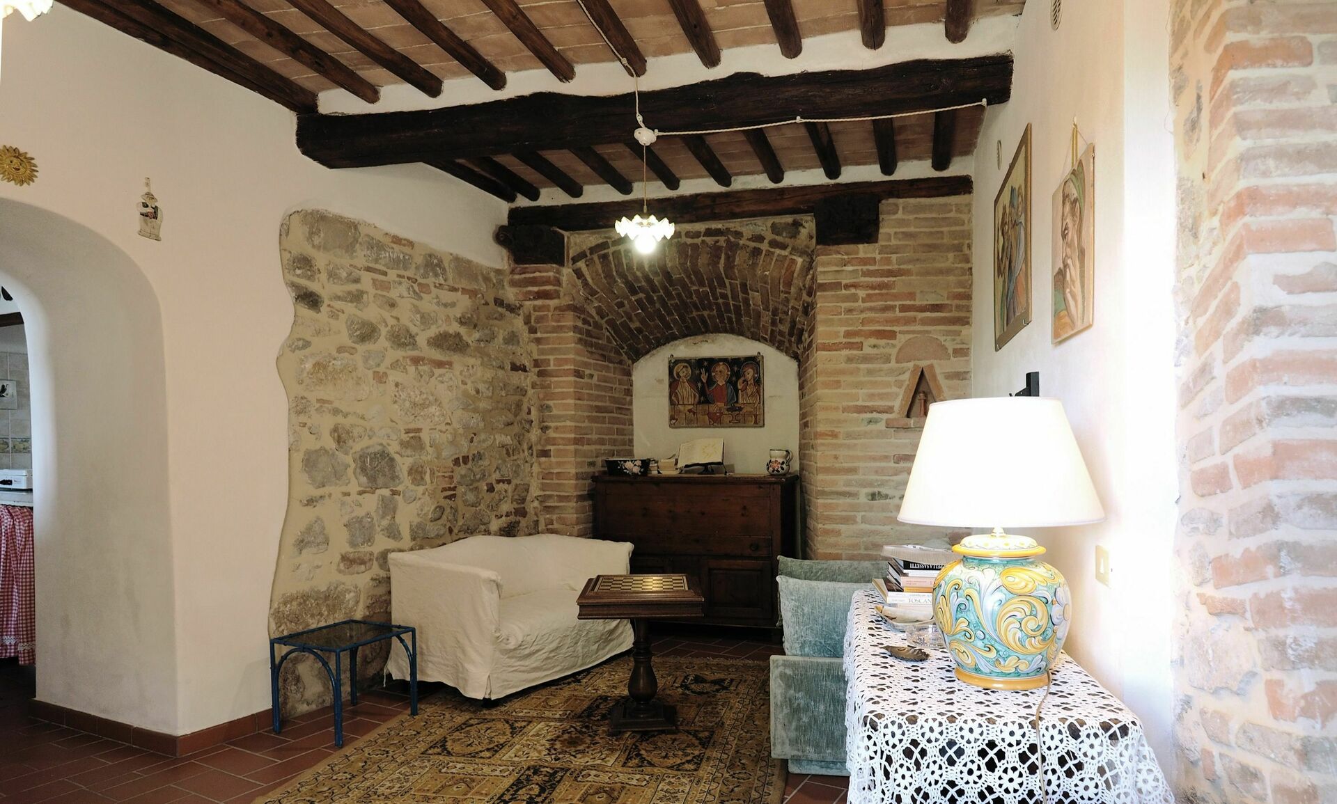 Die Wohnung liegt in der Nähe des Tennisplatzes und nur etwa 200 Meter vom Schwimmbad entfernt. Das Gebäude war ursprünglich ein Beobachtungsturm für das Fort von Castelvecchio, wurde später als Brennerei genutzt und schließlich durch eine sorgfältige Renovierung in ein wunderschönes Haus verwandelt, das mit allen modernen Annehmlichkeiten ausgestattet ist.