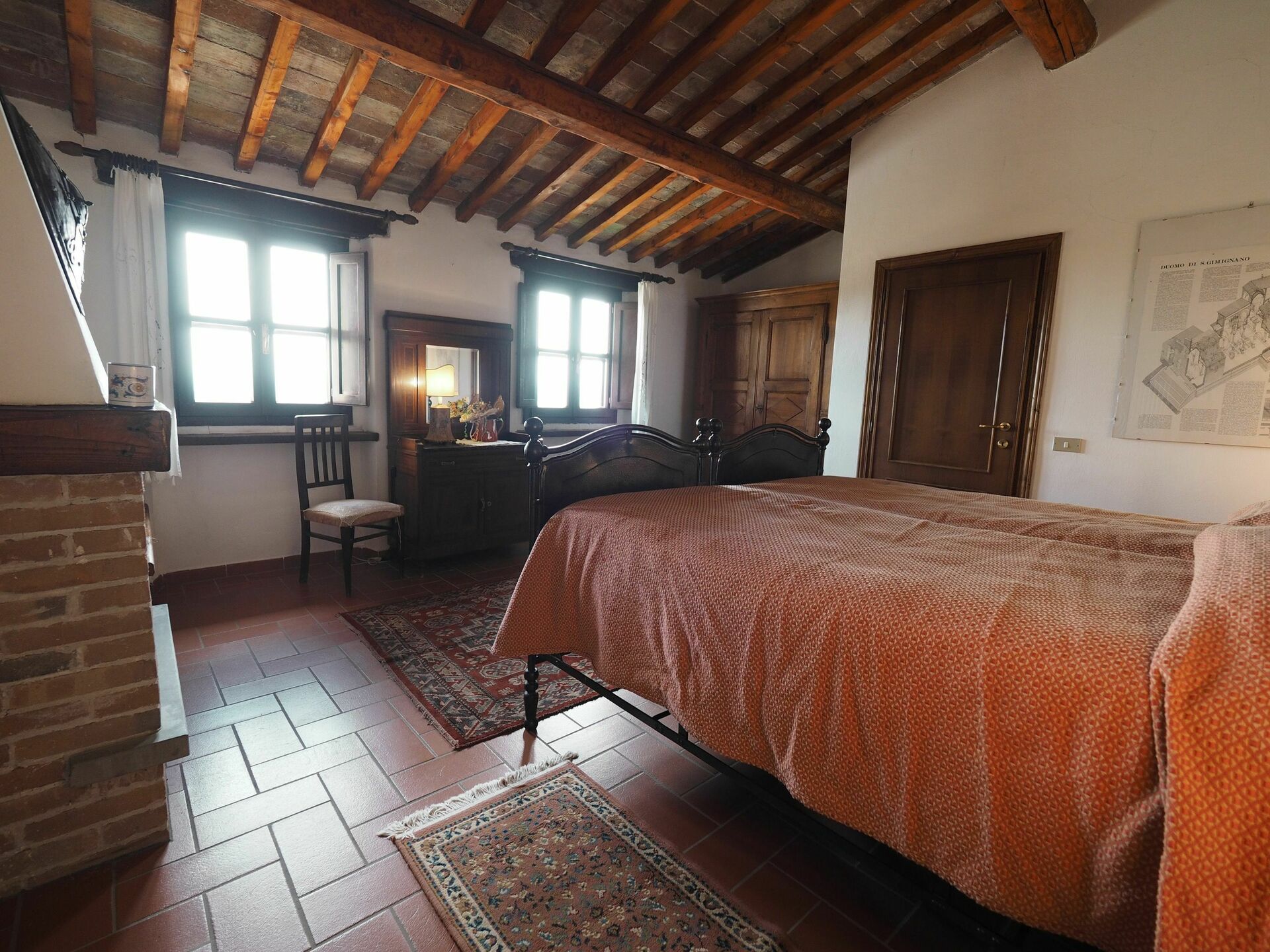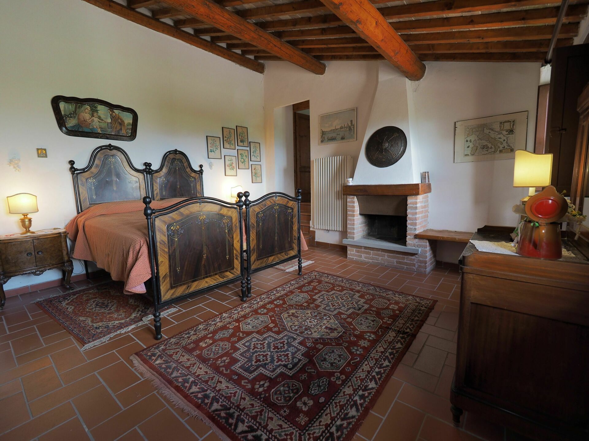 5 Stufen tiefer: Doppelzimmer mit Kamin und Zugang über 6 Stufen zu einem Bad mit Dusche. Privater und ausgestatteter Außenbereich mit Grill.