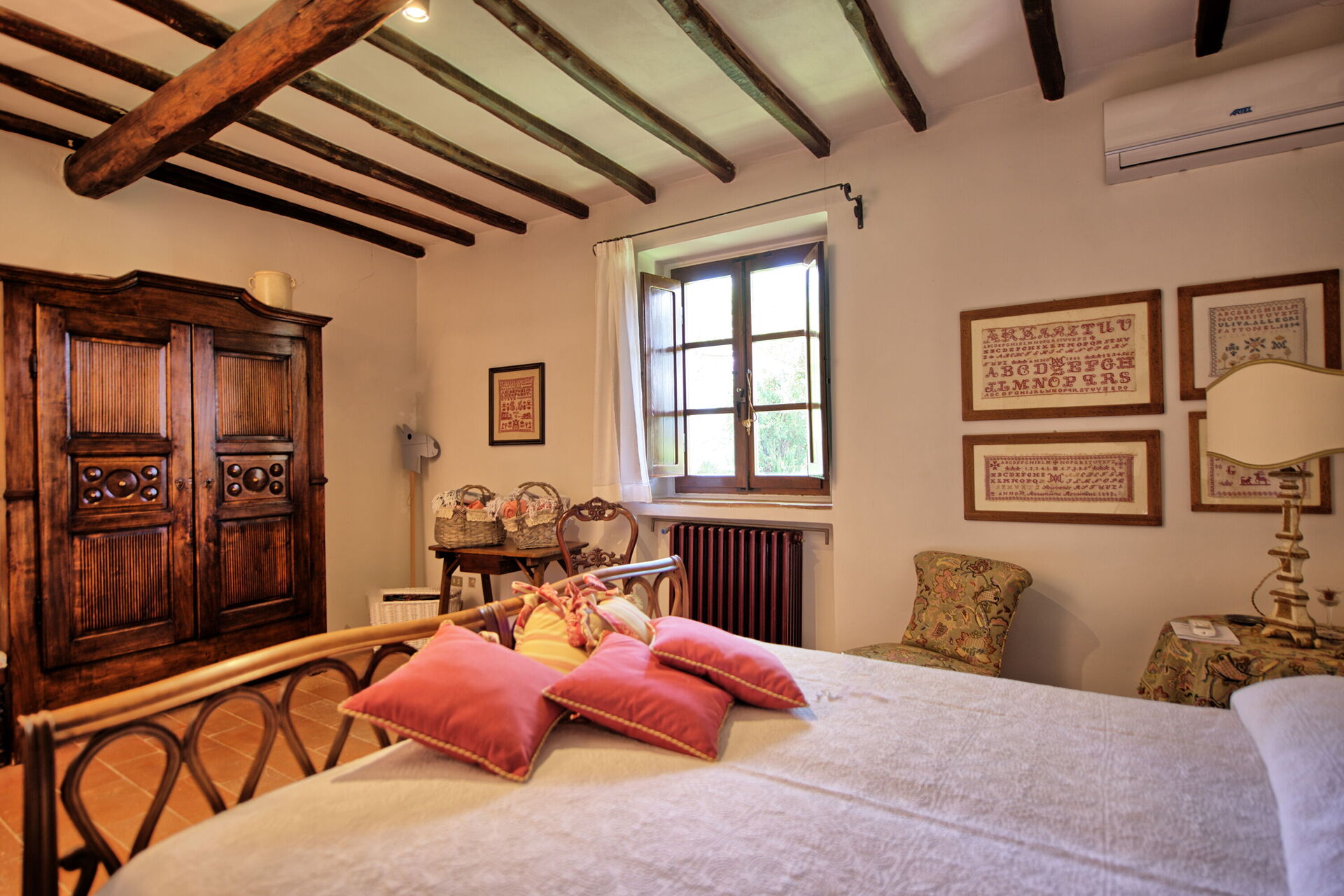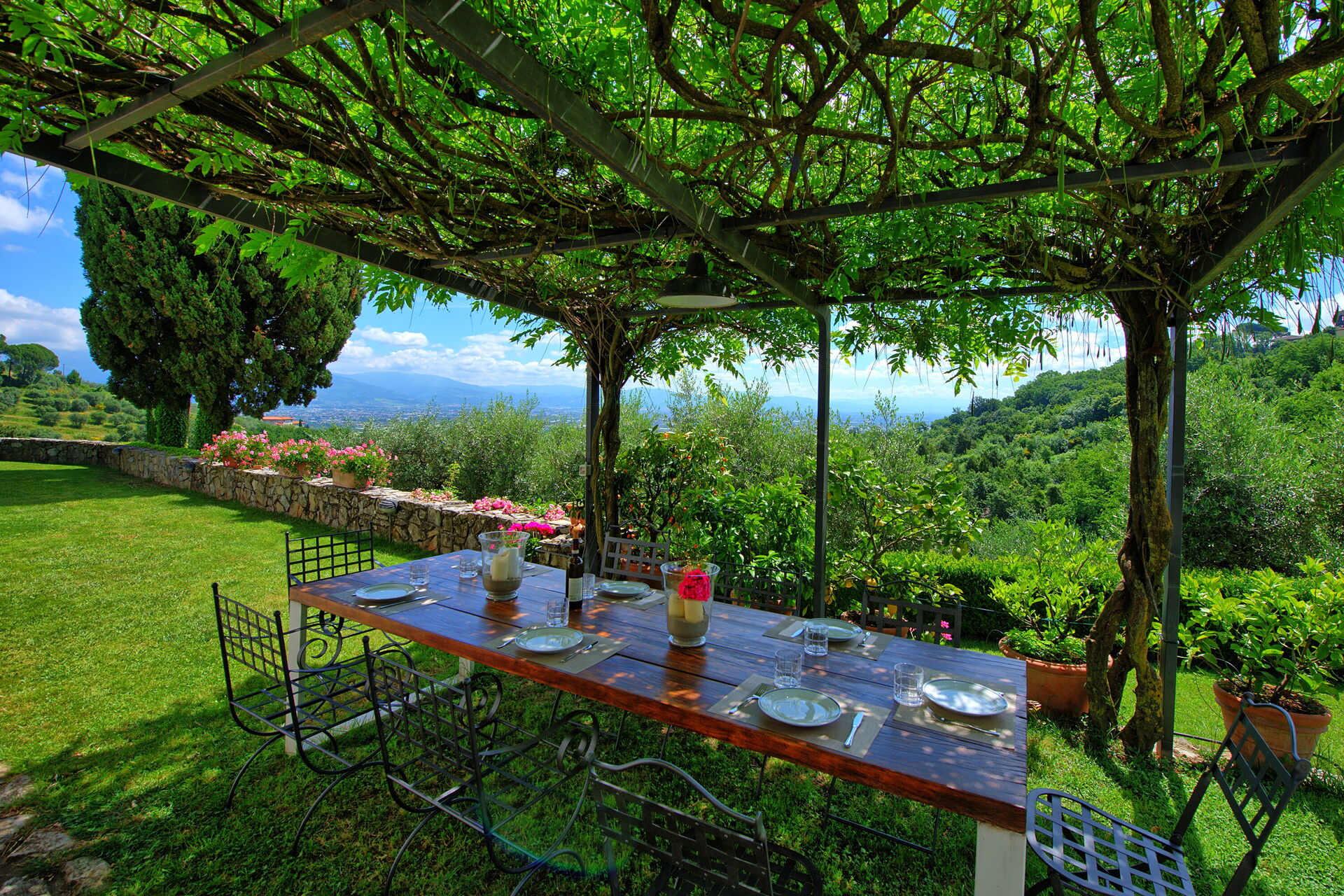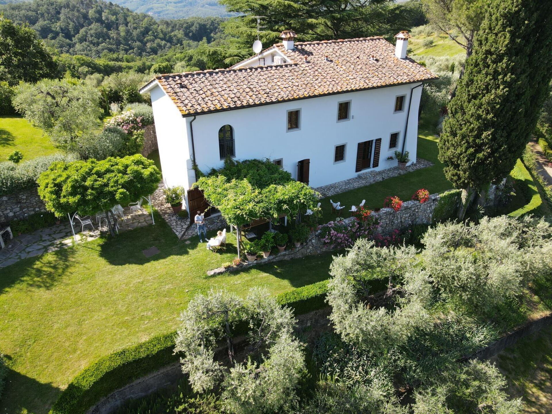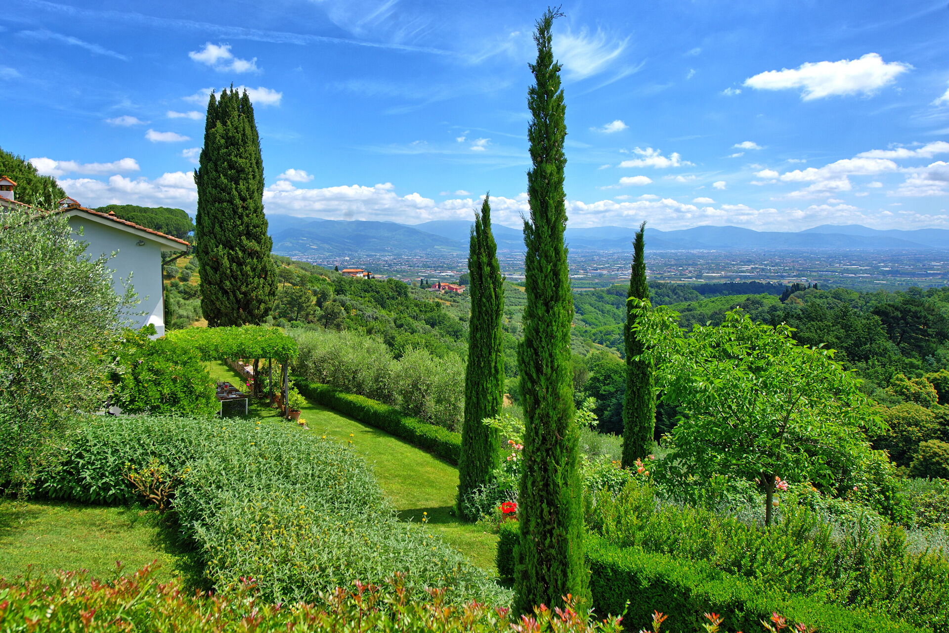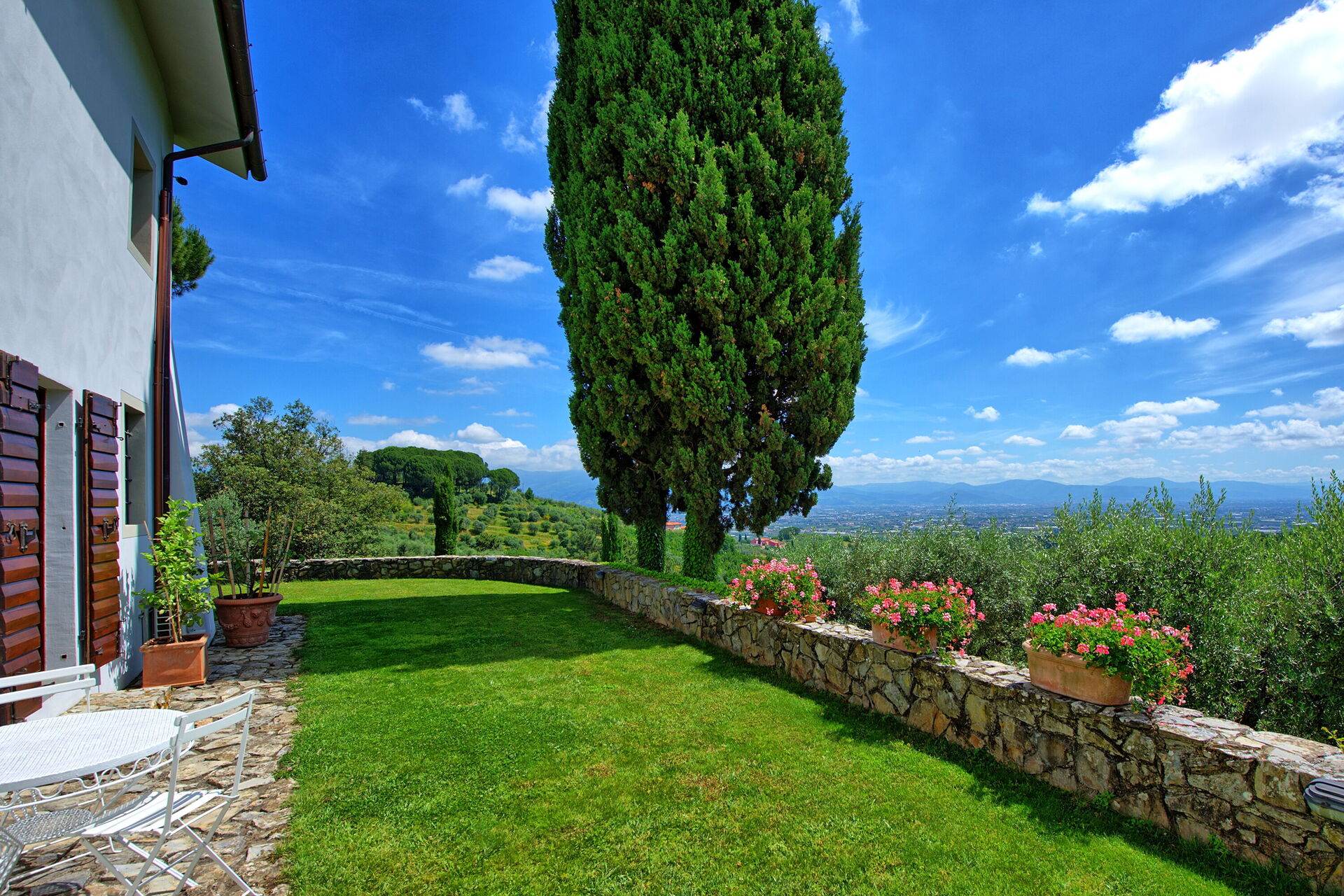 Mit vier Schlafzimmern bietet die Villa bequem Platz für bis zu sieben Personen und ermöglicht einen komfortablen Aufenthalt in einer beeindruckenden Umgebung. Die toskanisch inspirierte Einrichtung der Villa Mami schafft eine harmonische Atmosphäre, während der Garten einen fantastischen Blick auf das darunterliegende Tal bietet, das sich von Pistoia bis Florenz erstreckt.