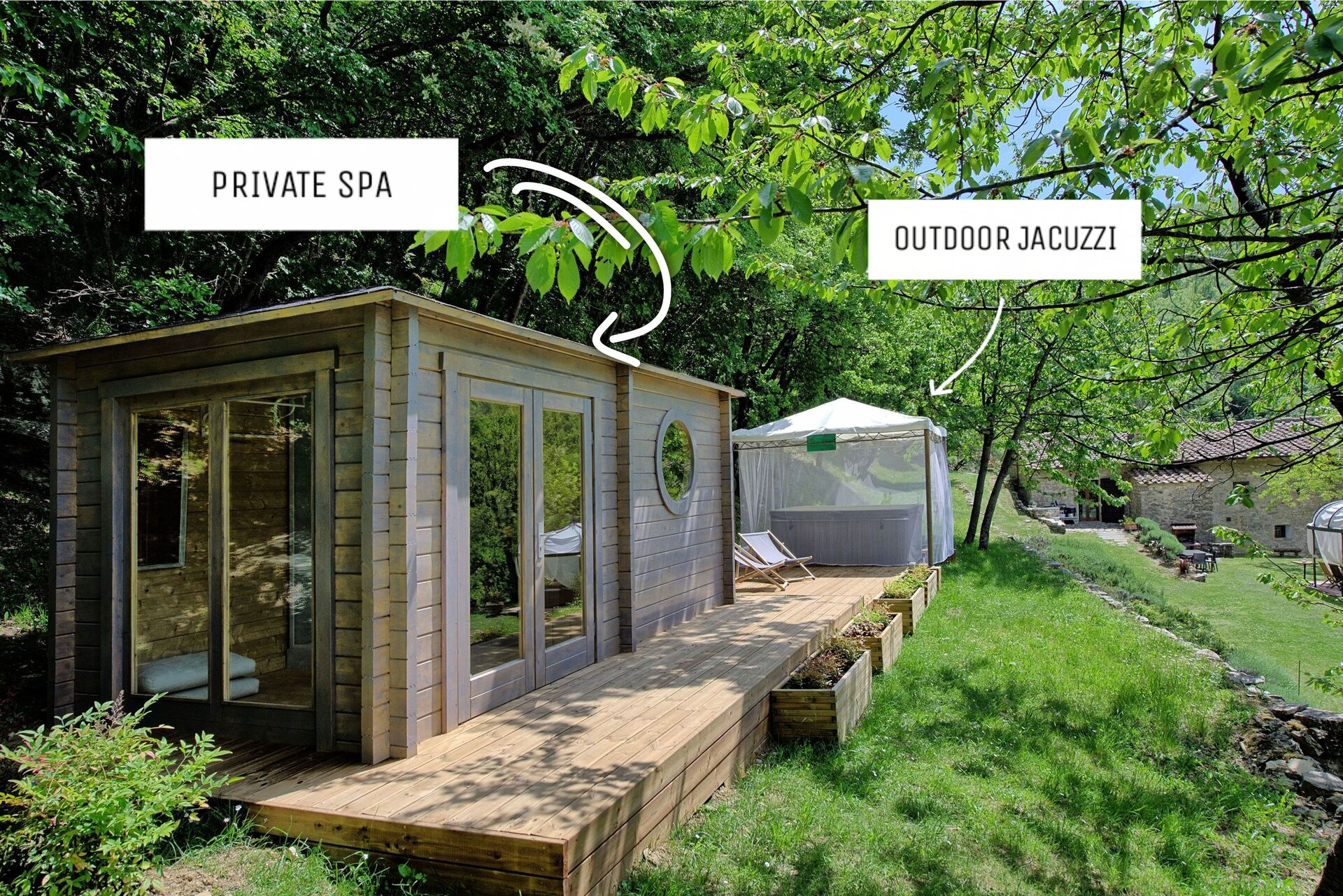 Innerhalb des Anwesens gibt es einen schönen Garten (1000 m2), der sich über mehrere Ebenen erstreckt, und einen Swimmingpool, der ausschließlich den Gästen vorbehalten ist.