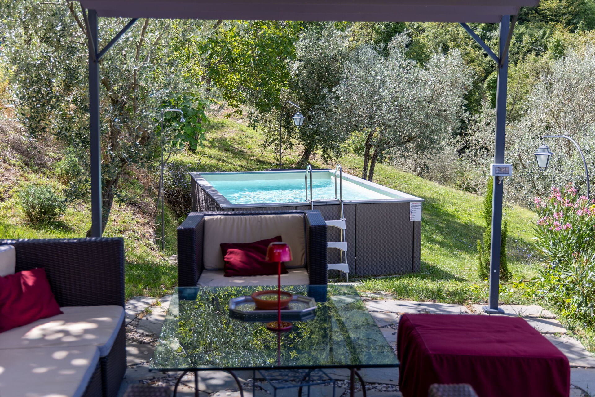 - Oberirdisches Schwimmbad exklusiv für die Gäste (5 x 3 m – Mindest- und Höchsttiefe 1,20 m)