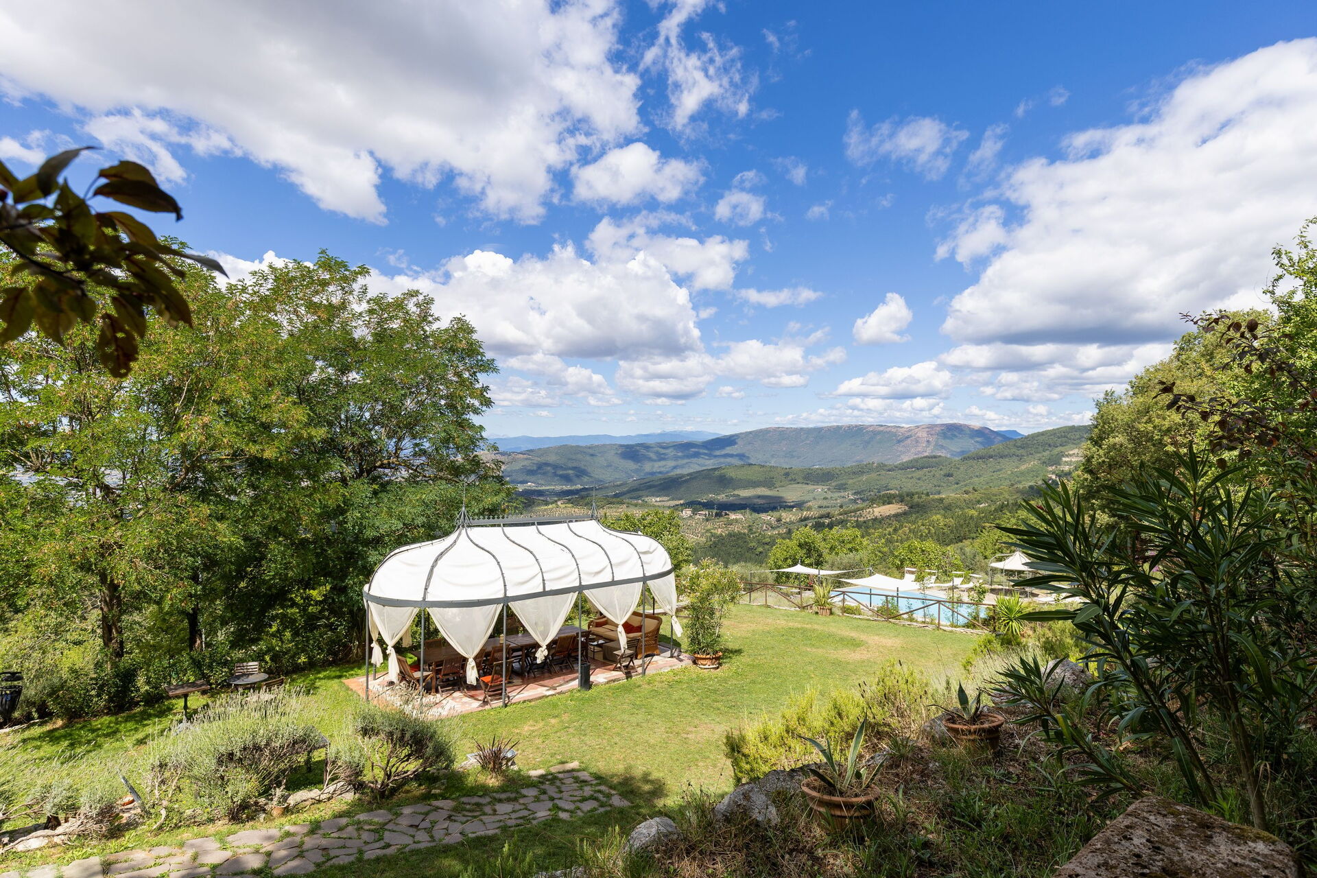 Innerhalb des Anwesens gibt es einen schönen Garten (1000 m2), der sich über mehrere Ebenen erstreckt, und einen Swimmingpool, der ausschließlich den Gästen vorbehalten ist.