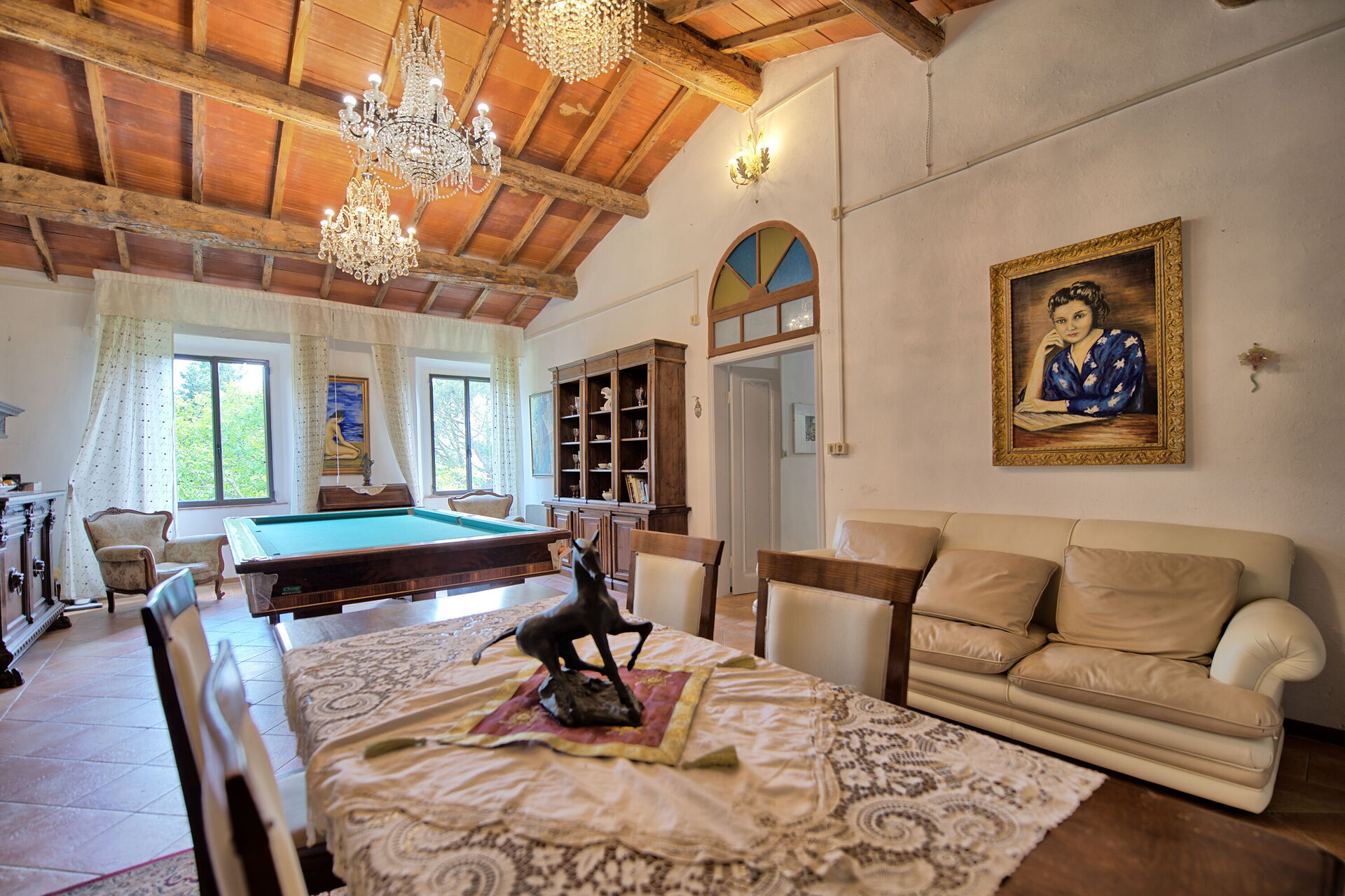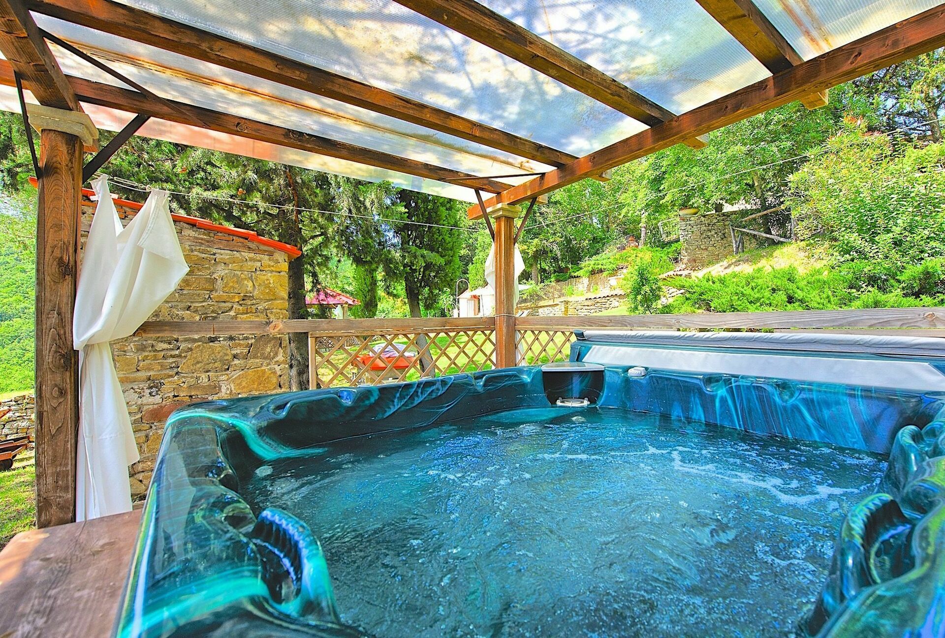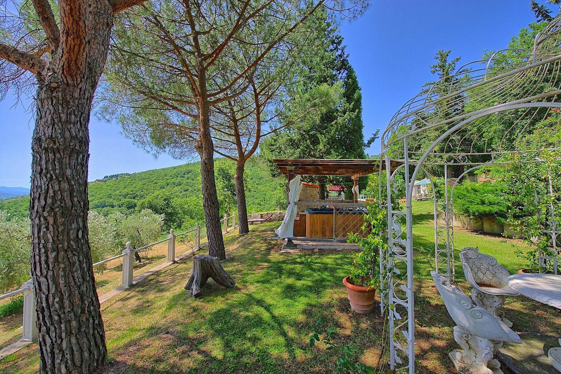 Freistehendes Haus mit privatem Schwimmbad und Aussen- Whirlpool auf den Hügeln vor Arezzo, eine schöne toskanische Stadt, ca. 10 km vom Haus entfernt. Der Besitz befindet sich mitten auf dem Land und ist umgeben von Wäldern und Olivenhainen; man geniesst einen ein wunderschöner Blick auf das unten liegende Tal und auf den Ort Arezzo. Die Inneneinrichtung ist komfortabel, in rustikaler toskanischer Art gehalten. Eine Gruppe von 9 Personen findet in dieser Unterkunft Platz in der man einen sehr angenehmen Urlaub verbringen wird. Die günstige geografische Position des Hauses erlaubt es die Sehenswürdigkeiten Umbriens und der Toskana besuchen zu können. Vom Bahnhof in Arezzo kann man täglich schnell und bequem mit dem Zug nach Florenz,Orvieto und Rom gelangen.