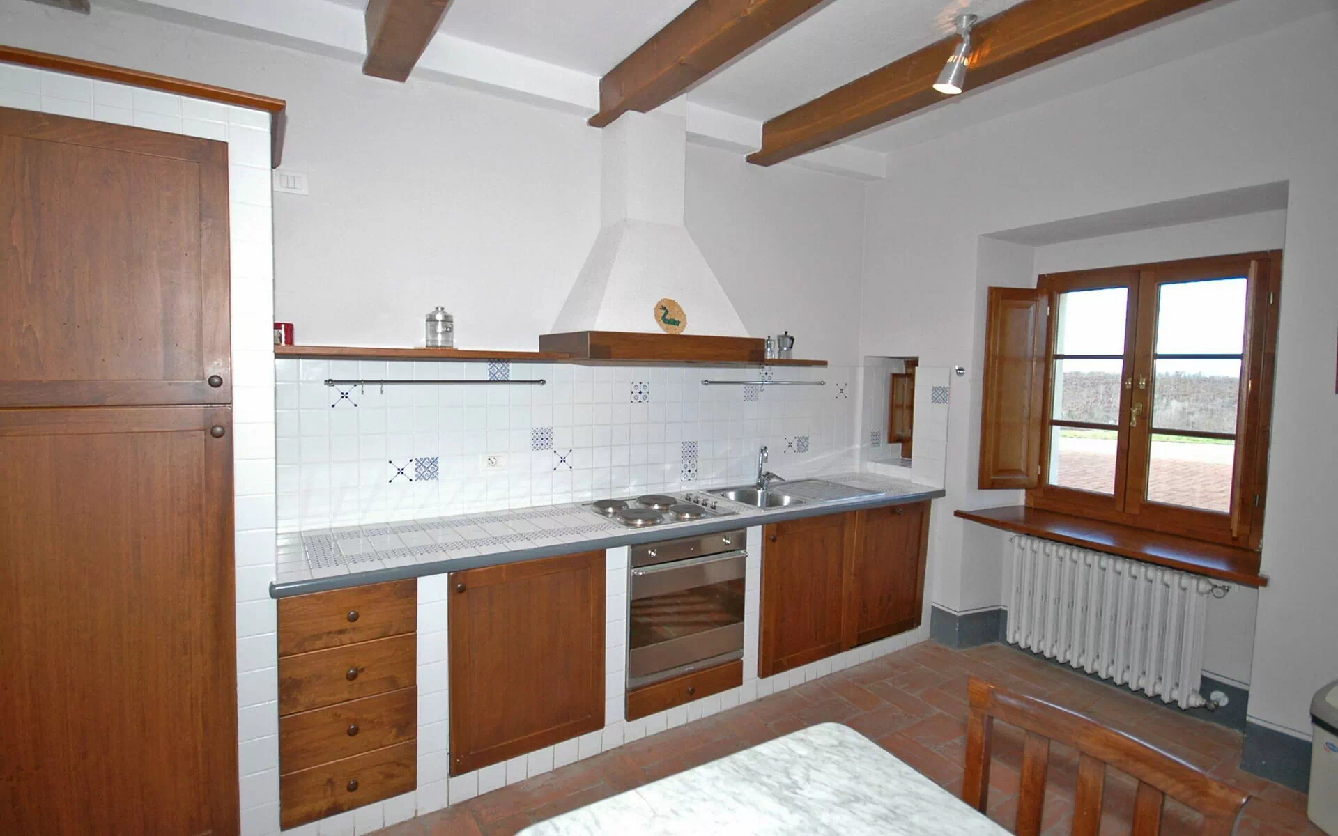 The property is in a beautiful but quiet location surrounded by vineyards and spectacular Tuscan scenery. The apartment was spacious and generally cool inside despite the high temperatures outside. The pool area is superb with extensive paving and plenty of sun-loungers.
