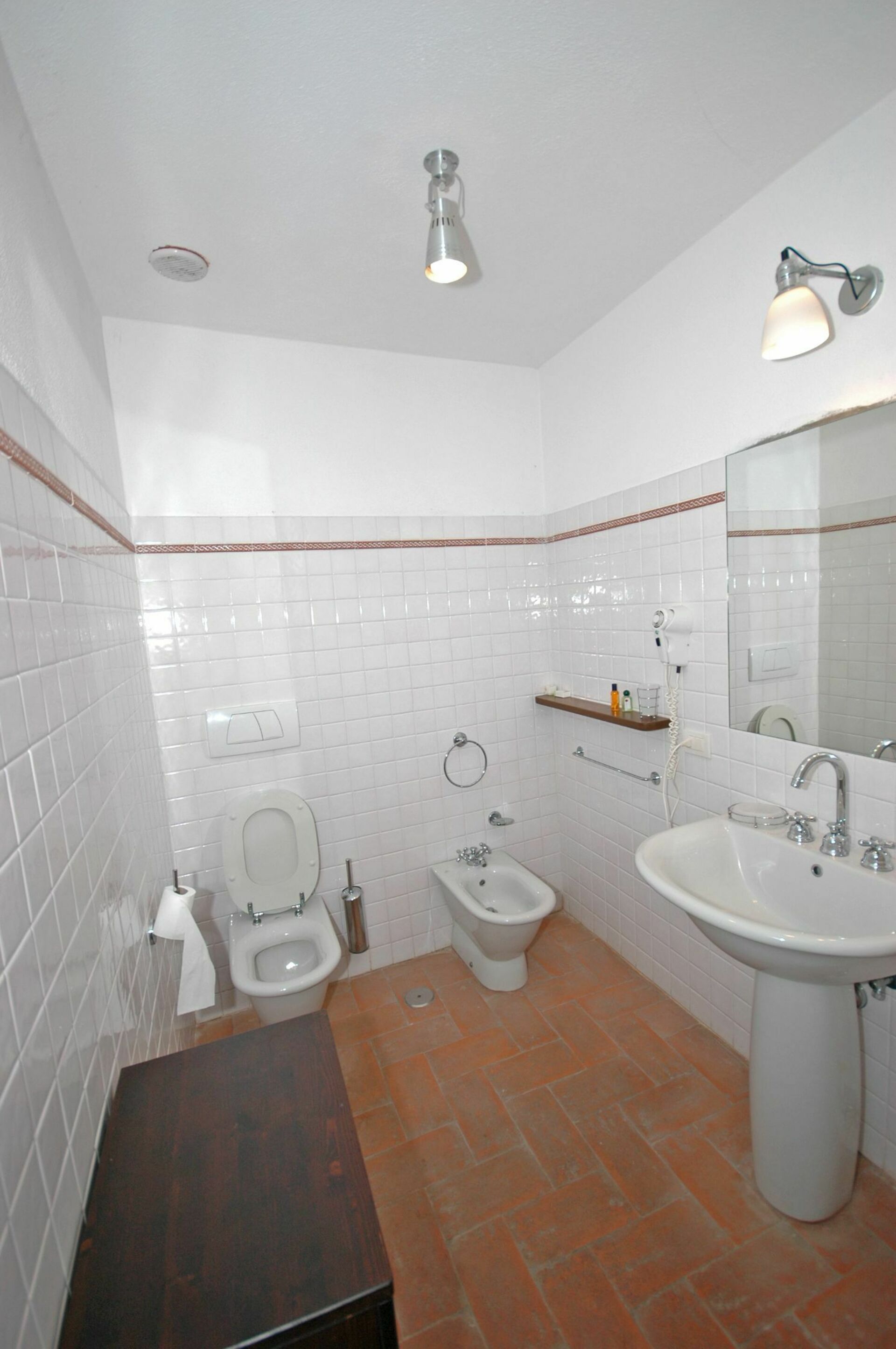 Erdgeschoss: Wohnzimmer (Sat-TV) mit Kamin und Essbereich, kleine Küche (Ofen, Gefrierfach, Spülmaschine, Waschmaschine), Abstellkammer, 2 Doppelzimmer, eines davon mit eigenem Bad mit Dusche, kleines Einzelzimmer, Bad mit Dusche.