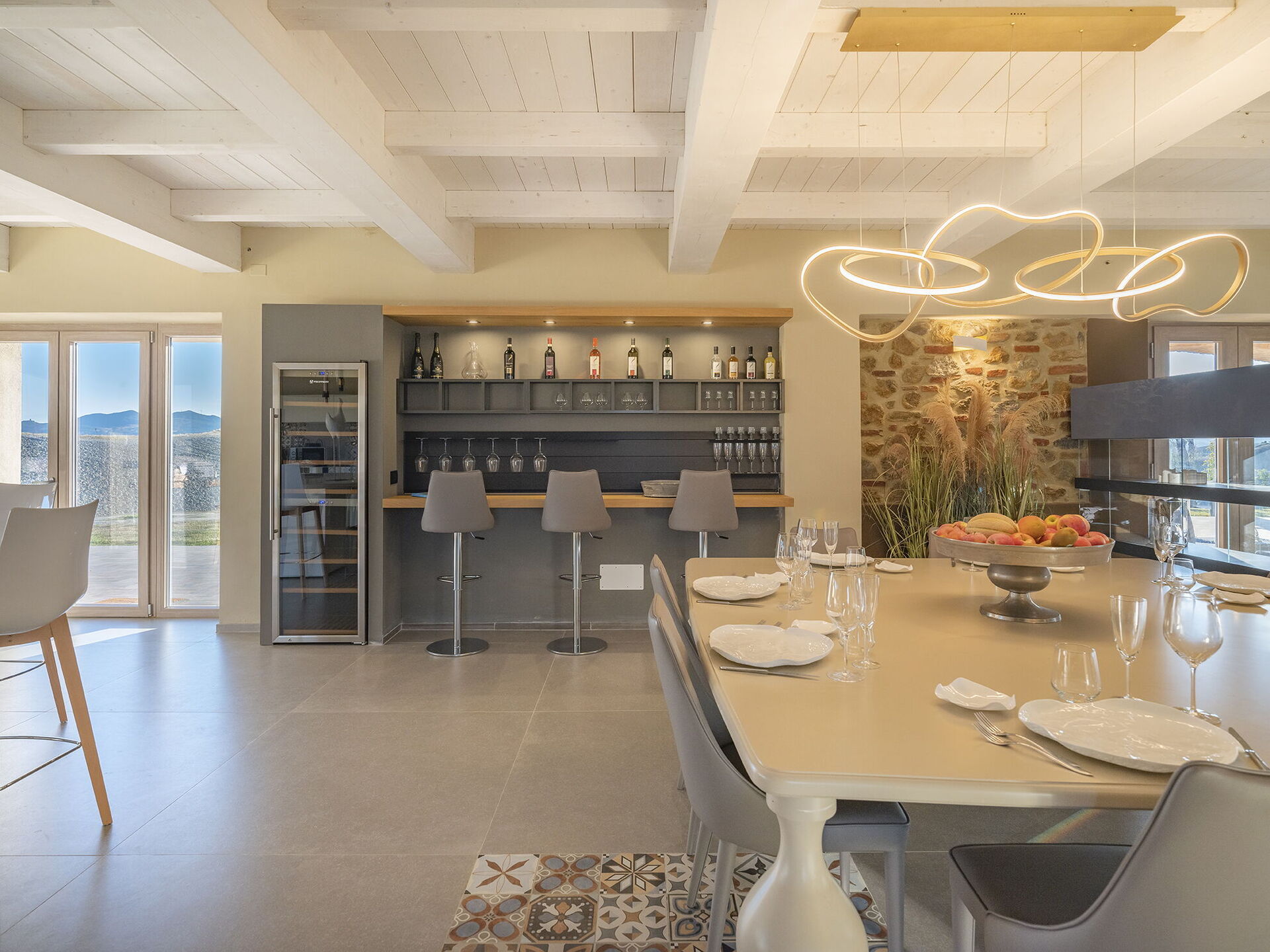 Im Innenbereich ist die Villa modern und sehr raffiniert eingerichtet. In dem grossen Aussenbereich hat man genug Platz um zu spielen und kann das große Schwimmbad mit Sonnenterrasse, einen schönen Grillplatz, eine Kohlenpfanne für das Feuer und große Grünflächen geniessen.