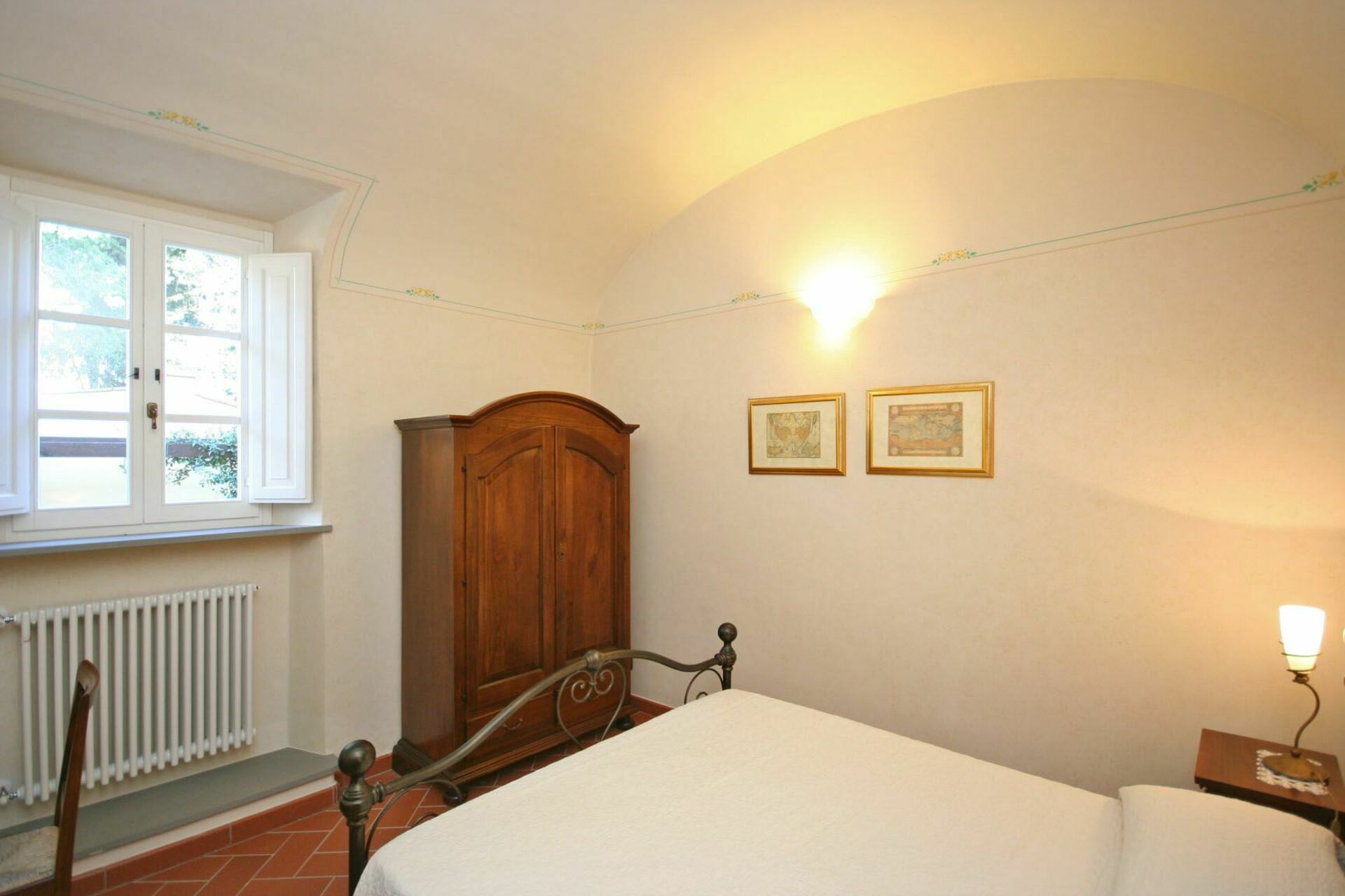 Die Räume des von uns gemieteten Apartments sind geschmackvoll eingerichtet und fast das wichtigste die Betten bieten hohen Schlafkomfort mit sehr guten Matratzen. In diesem für uns fast zu heißen letzten Mai Tagen mit über 30 Grad haben uns die dicken Mauern der Villa vor der Hitze geschützt. Auch das die Villa ca. 590 Meter über den Meeresspiegel liegt hat die Temperaturen erträglicher gestaltet, hier hatten wir ca. 2-3 Grad niedrigere Temperaturen als in Volterra. Frieren muss man nicht weil die Heizung kraftvoll und schnell die Räume wärmt, das konnten wir in den ersten Tagen ausprobieren wo es noch 20 Grad Außentemperatur hatte.