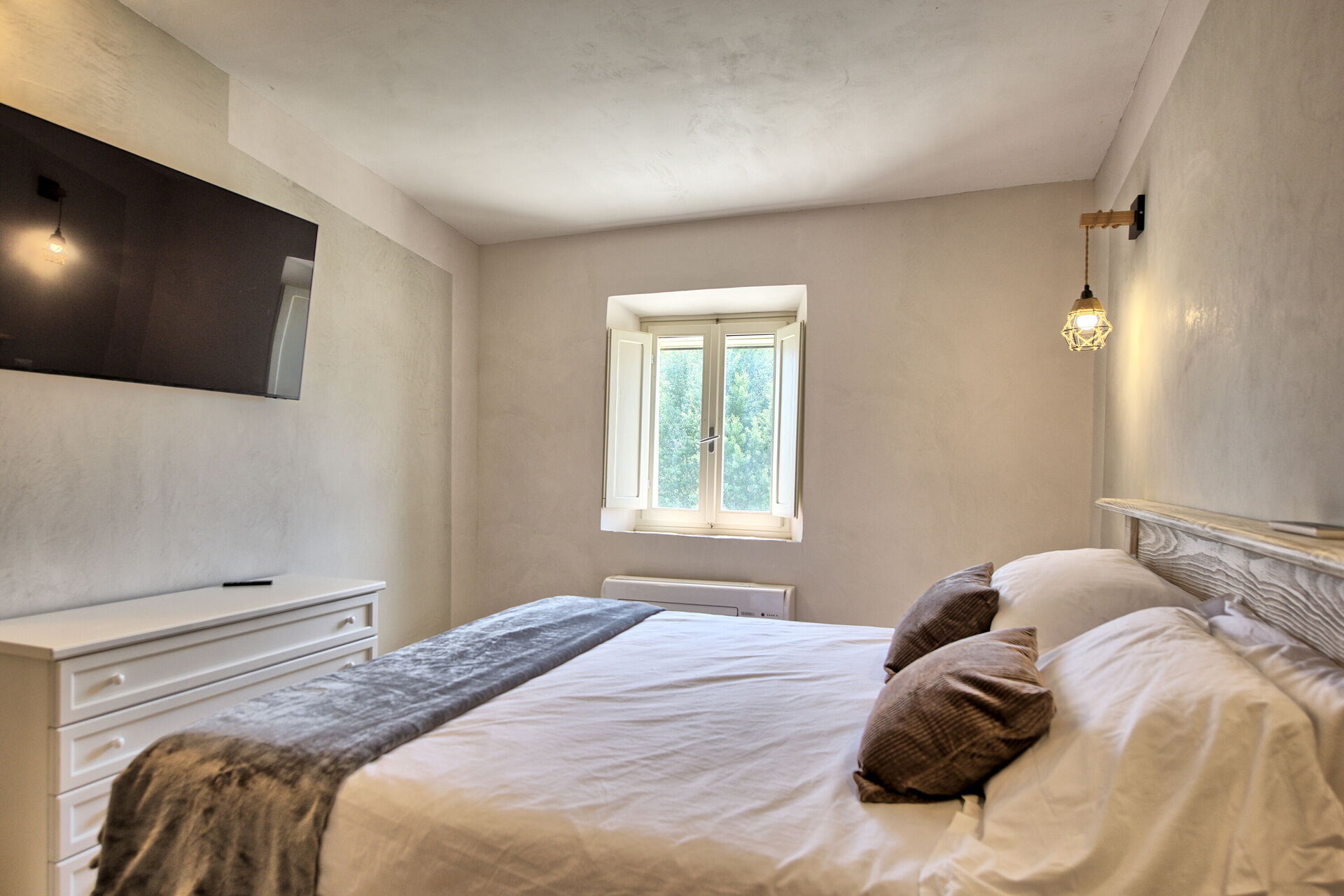 Hochparterre: Wohnzimmer (Smart-TV und Klimaanlage) mit Doppelschlafcouch, Essbereich und Kochnische (Geschirrspüler, Backofen, Kühlschrank, Espressomaschine, Toaster), 2 Doppelzimmer (jeweils mit Klimaanlage), Bad mit Dusche.