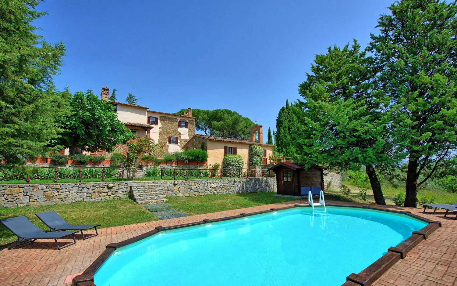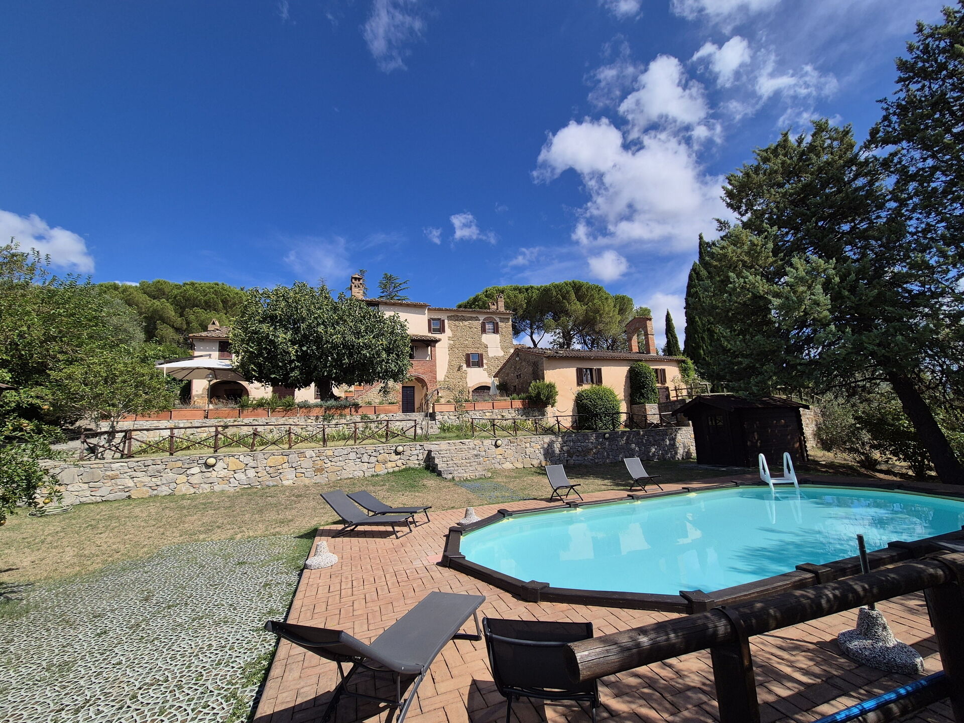 Die Ferienvilla mit privatem Schwimmbad ist ein altes Steinhaus dessen Ursprung in das 14. Jahrhundert zurückführt, Das wunderschöne Haus befindet sich in einem 4 Hektar grossem Besitz und ist umgeben von Zierpflanzen, Obst- und Olivenbäumen. Der Besitz befindet sich in ruhiger Panorama-Position mit wunderschönem Blick auf die umliegende Landschaft.
