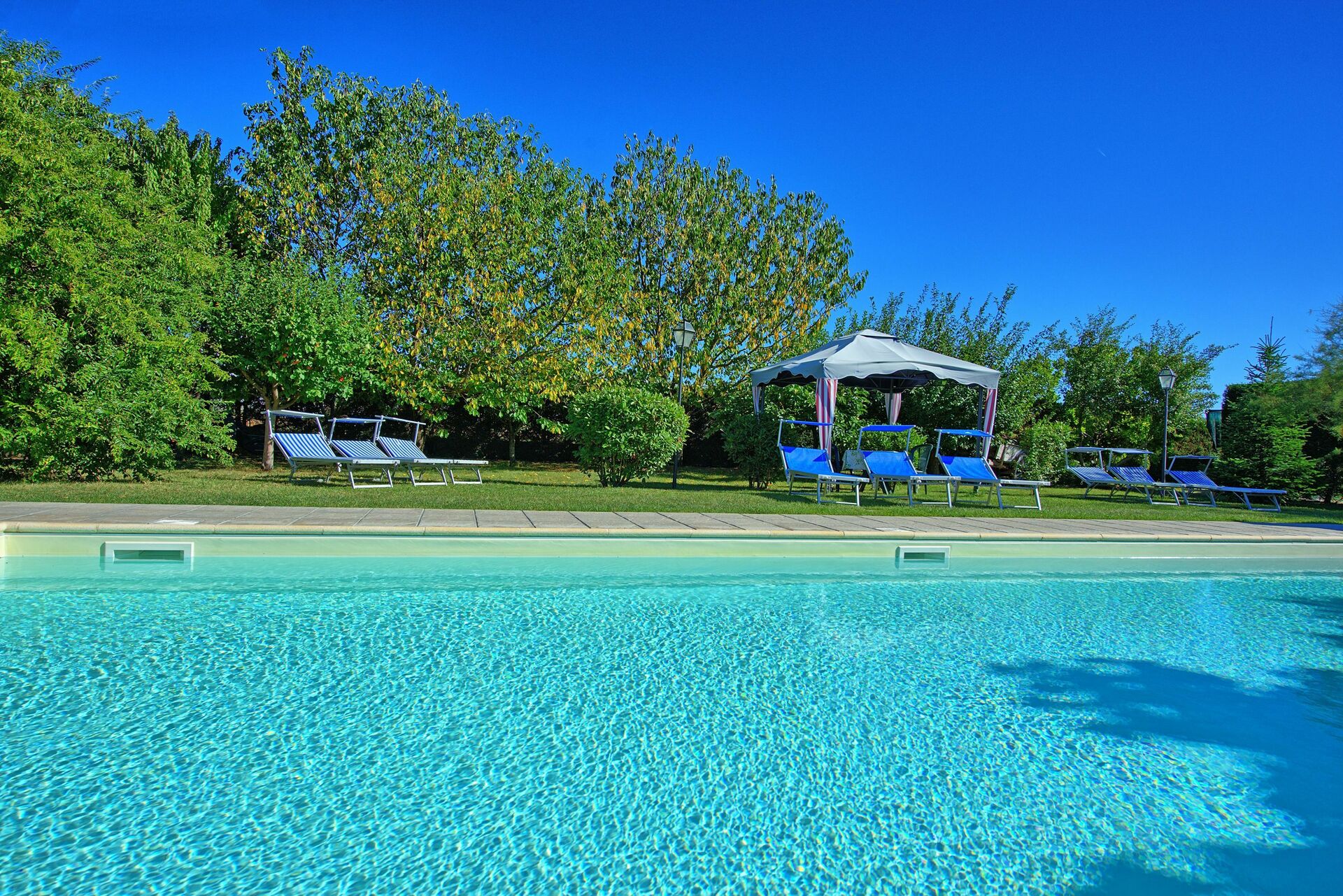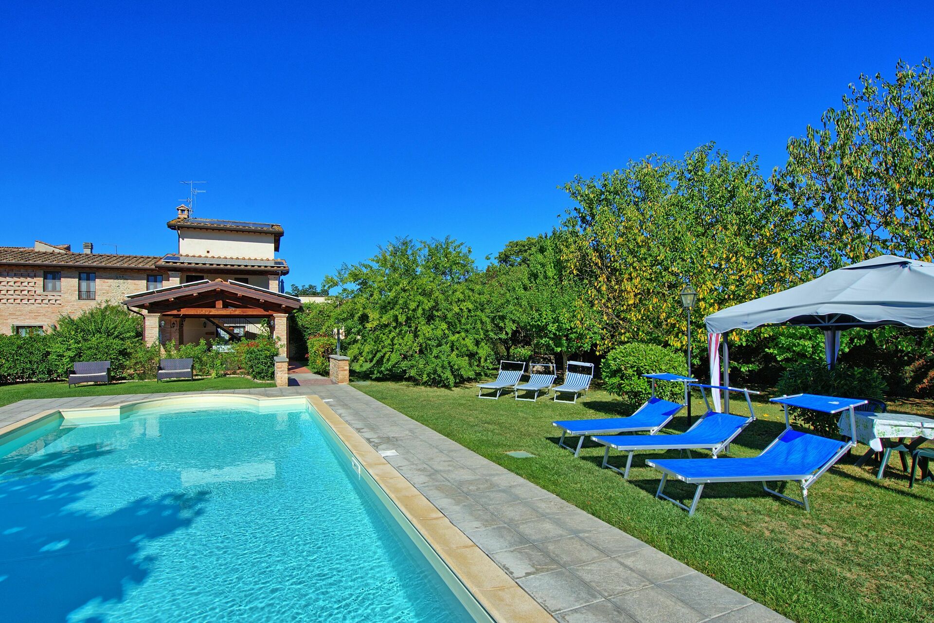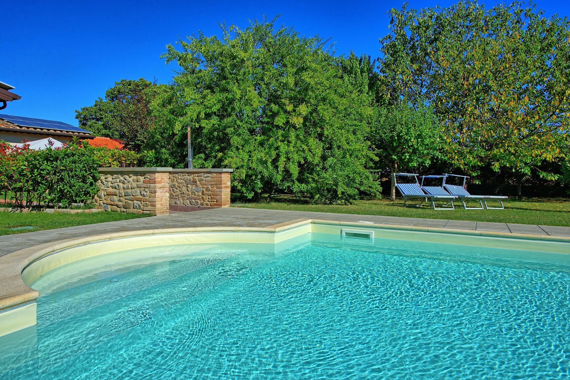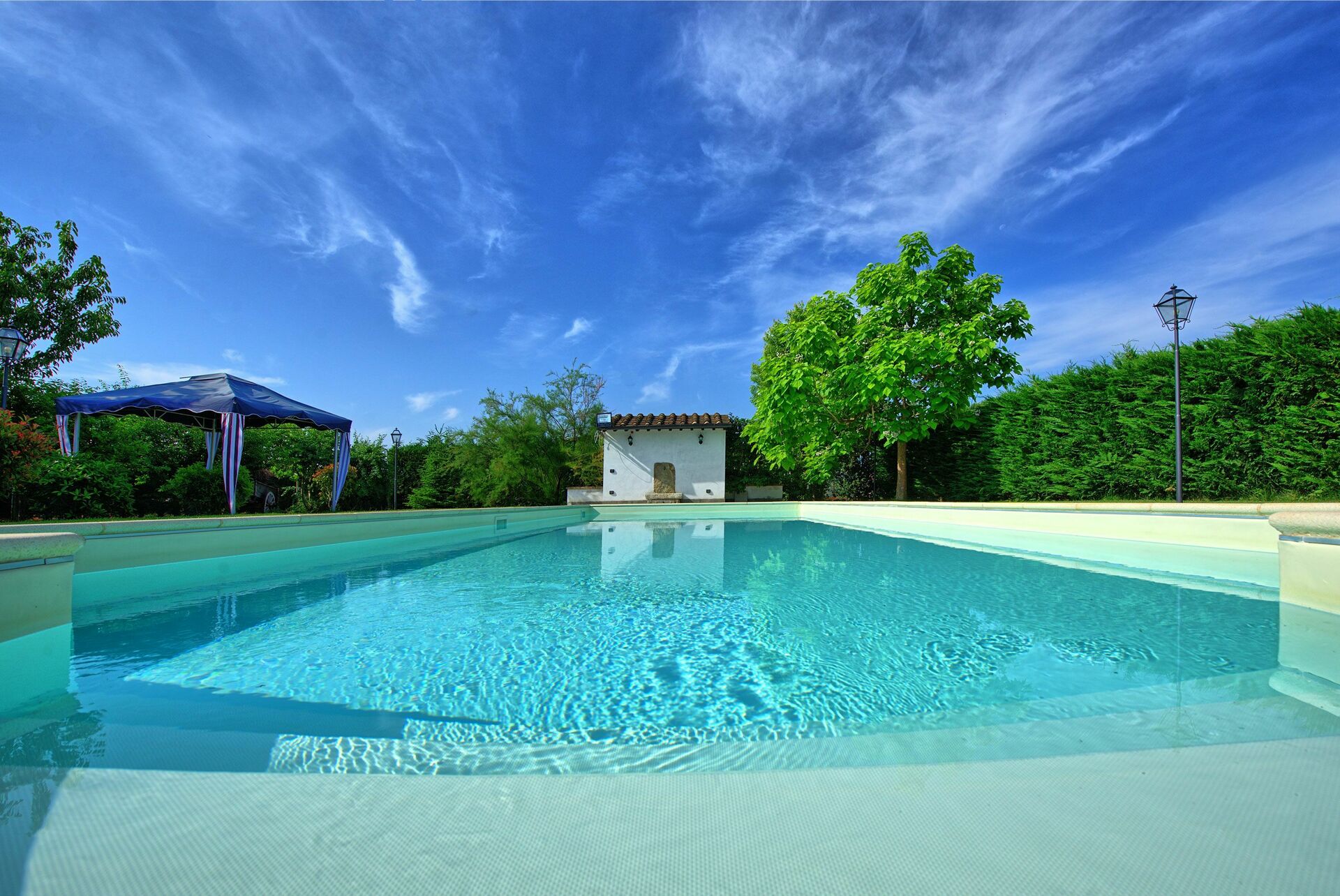 Das private Schwimmbad, das den Gästen exklusiv zur Verfügung steht wird an heissen Tagen Abkühlung bringen, in absoluter Privatsphäre, denn das Schwimmbad ist durch eine grosse Hecke abgeschirmt.