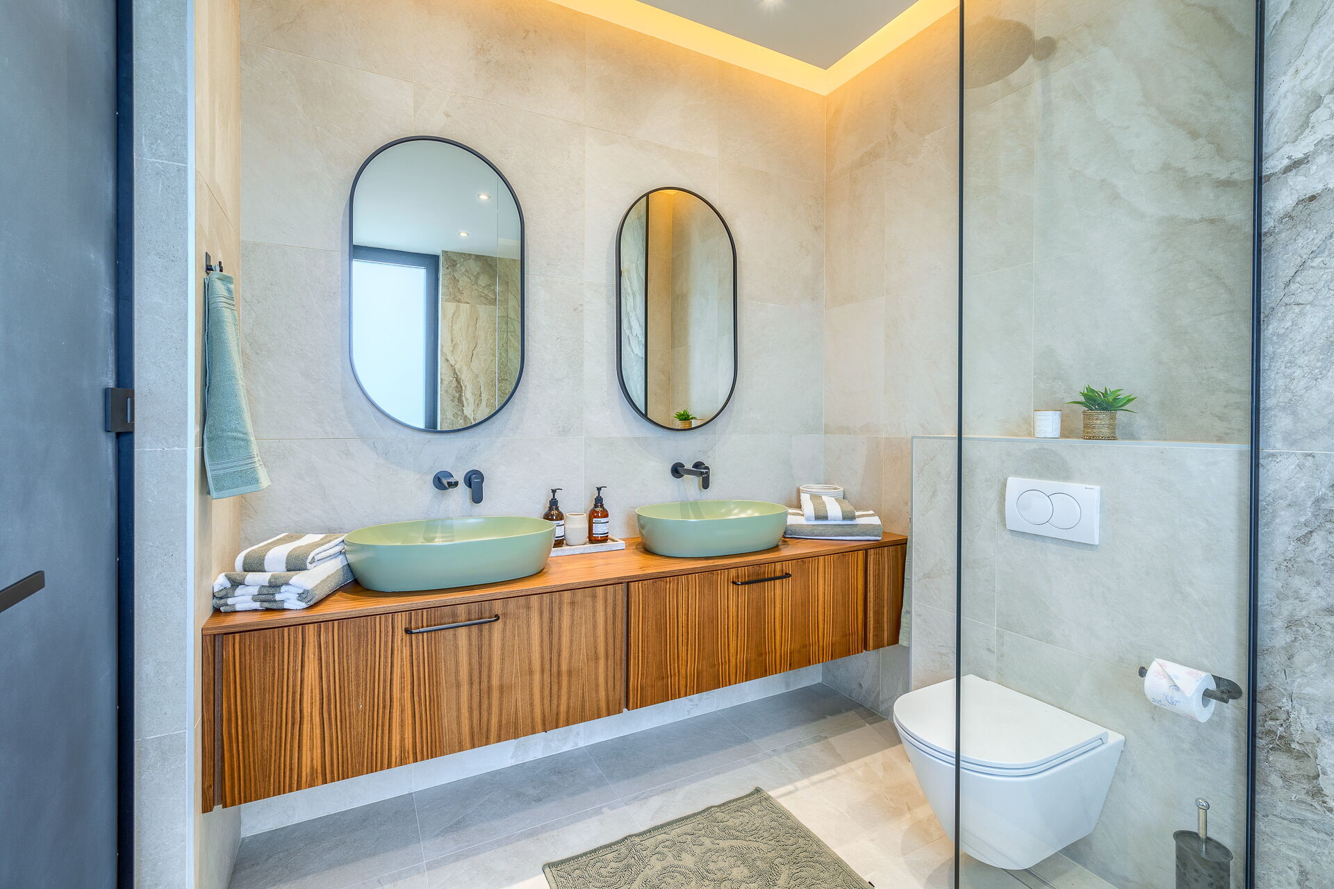 In der Villa gibt es 5 Schlafzimmer und 5 Badezimmer (davon 4 mit Dusche und eines mit Badewanne + Dusche):