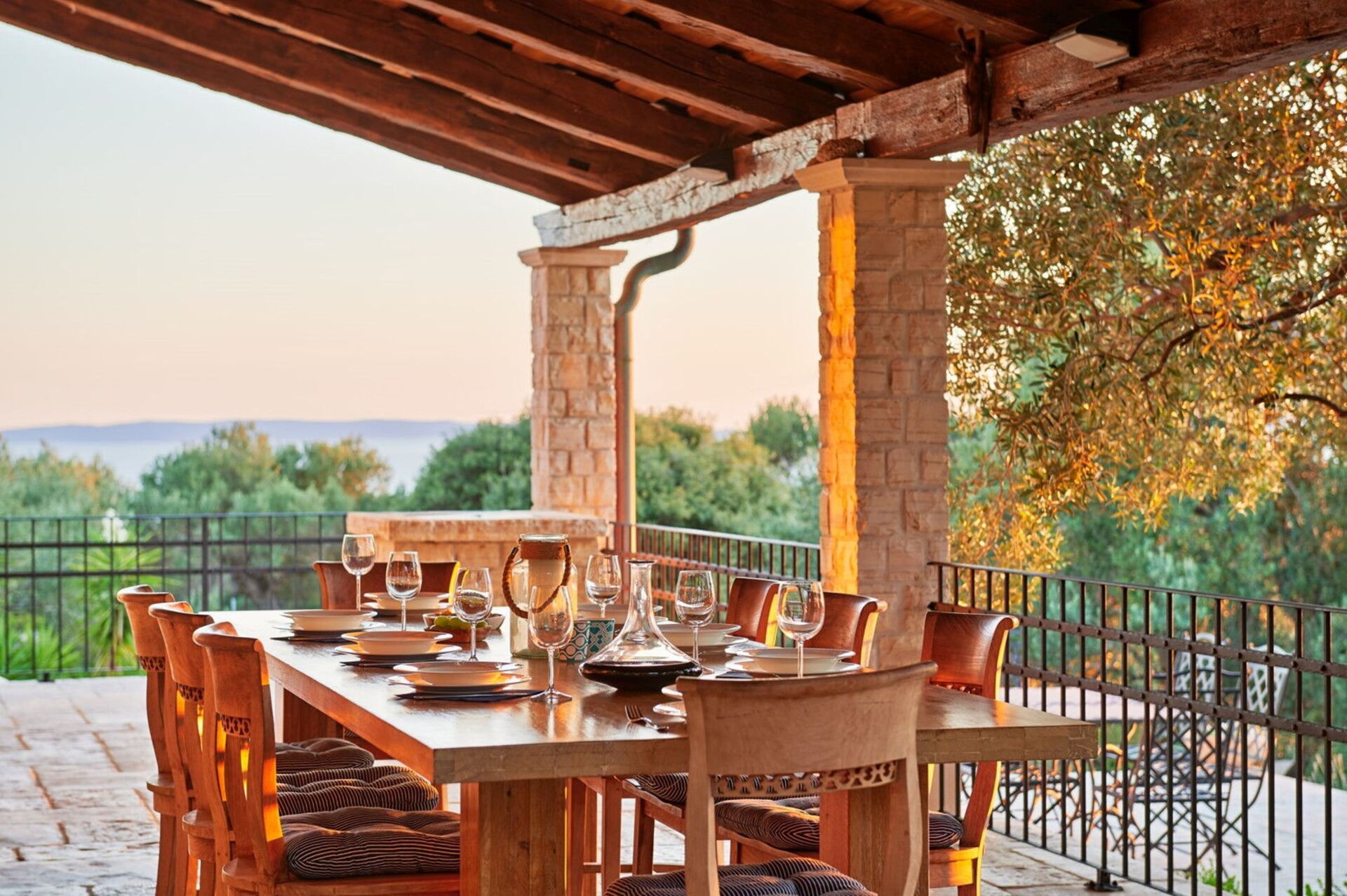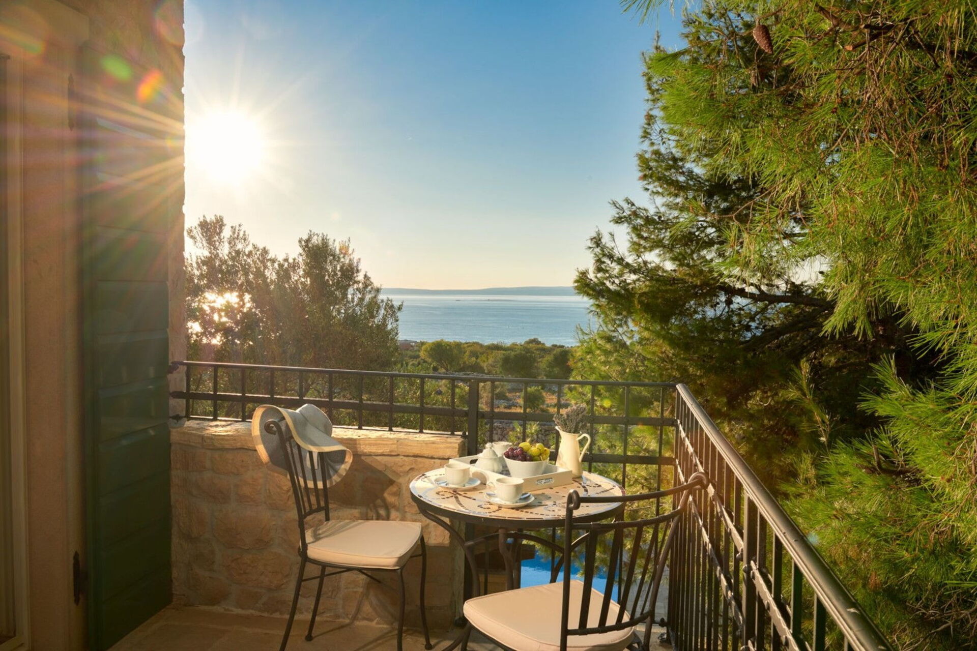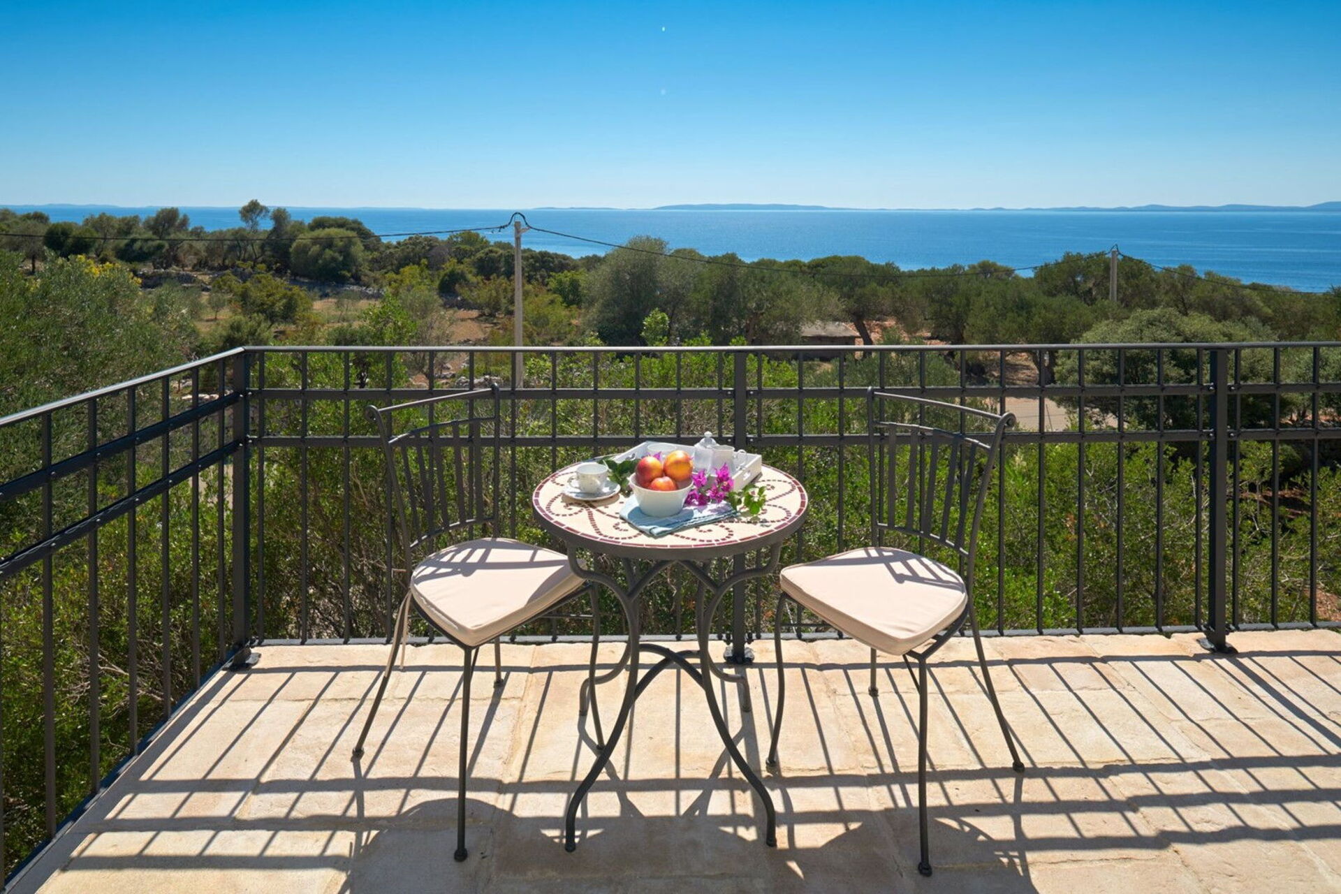 Die hügelige Lage und die Nähe zum Strand (nur 250 Meter) bieten sowohl von den Balkonen als auch von der überdachten Veranda aus, die ausgestattet ist mit einem schönen Essbereich, einen bezaubernden Blick auf das Meer für gesellige Momente.