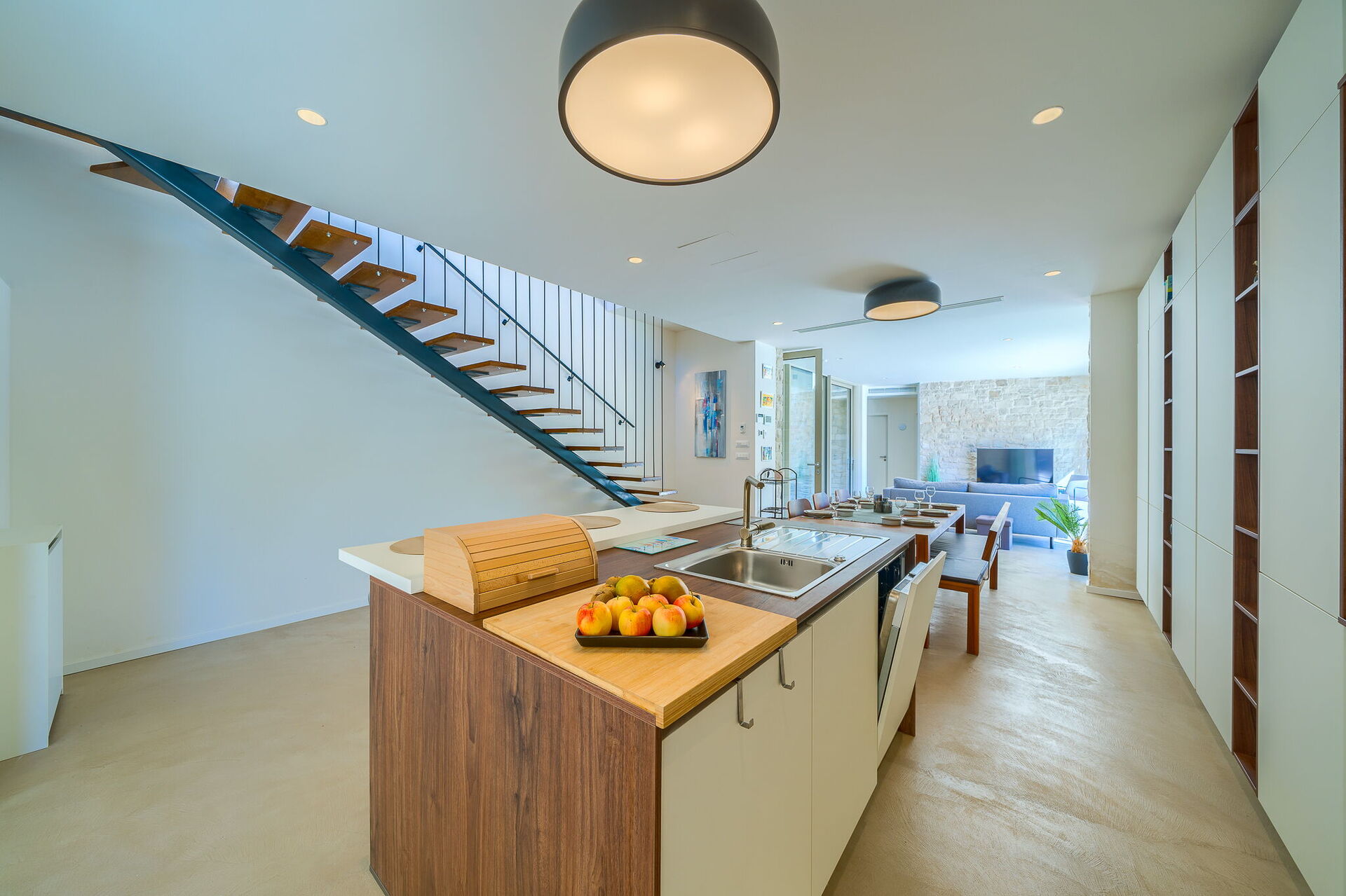 Die Villa besteht aus einem Haupthaus, das sich über 2 Etagen erstreckt, und einem Nebengebäude: Dank ihrer 4 Schlafzimmer bietet sie bequem Platz für bis zu 8 Personen in einer einladenden Umgebung, die sich durch helle Innenräume auszeichnet, geschmackvoll eingerichtet und mit allem Komfort ausgestattet ist.