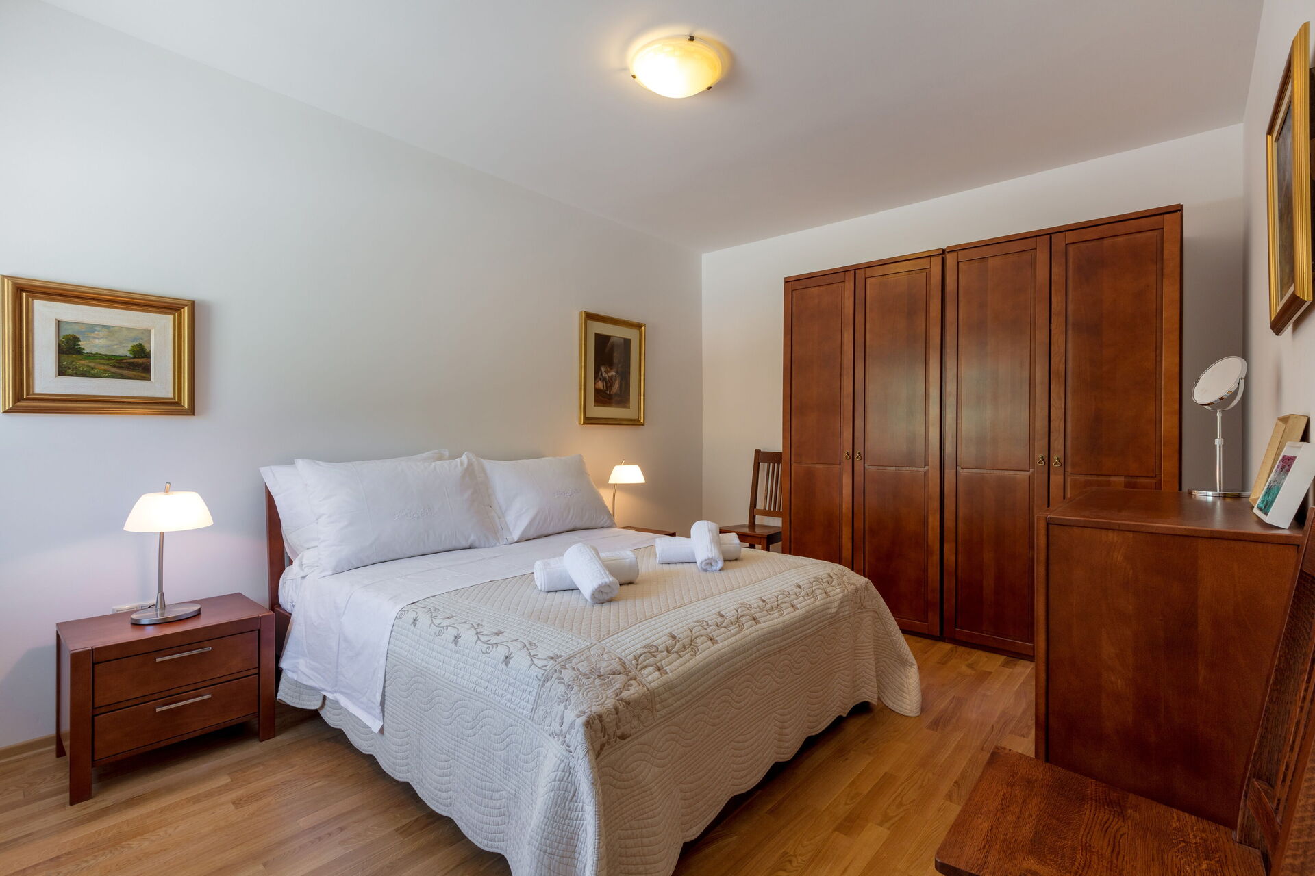 Eine Klimaanlage ist nur im Wohnbereich und nicht im Schlafbereich verfügbar. In den Doppelzimmern sind die Betten „Queen Size“.