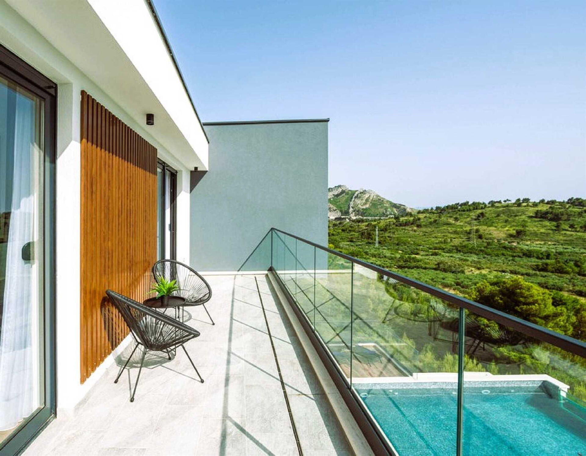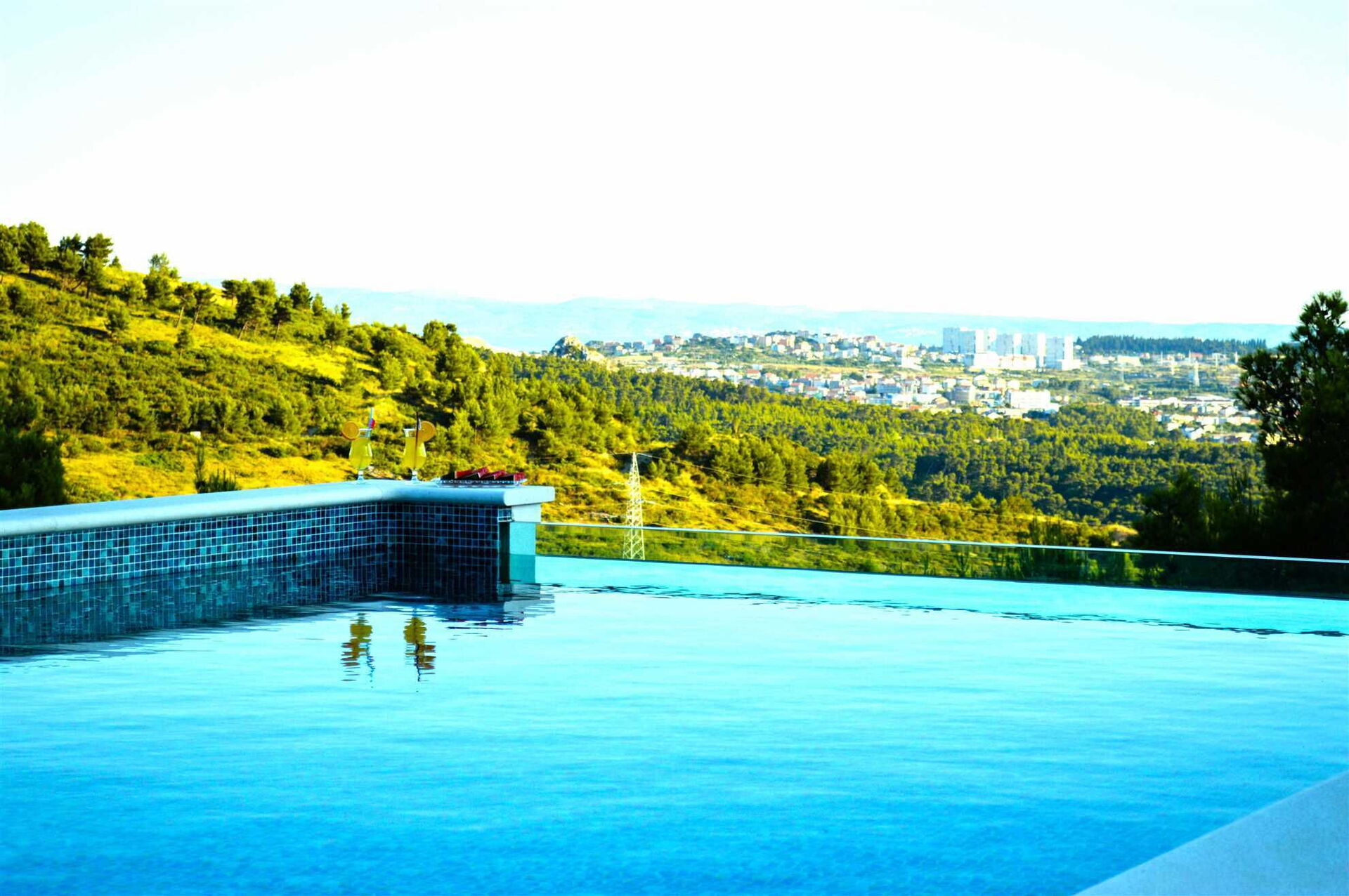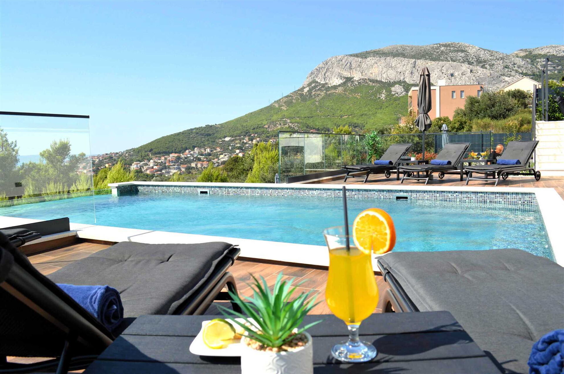 Dank der verschiedenen Terrassen der gesamten Villa haben die Gäste die Möglichkeit, die kroatische Sonne mit einem atemberaubenden Blick auf Klis und das Meer zu genießen.Den