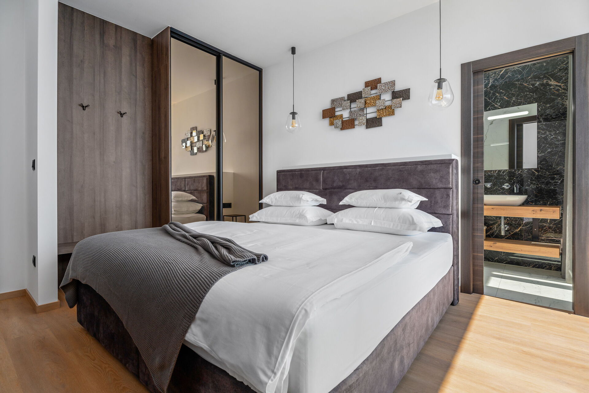Alle Zimmer haben einen Ausgang zum Schwimmbadbereich.