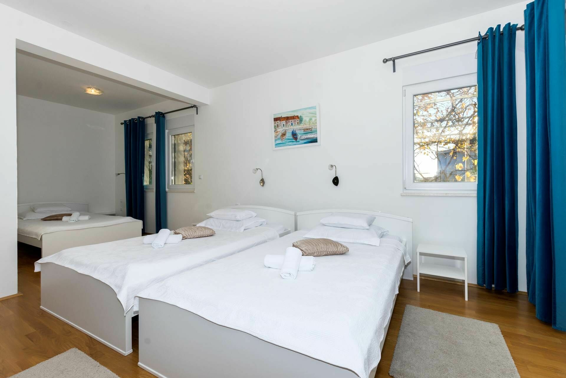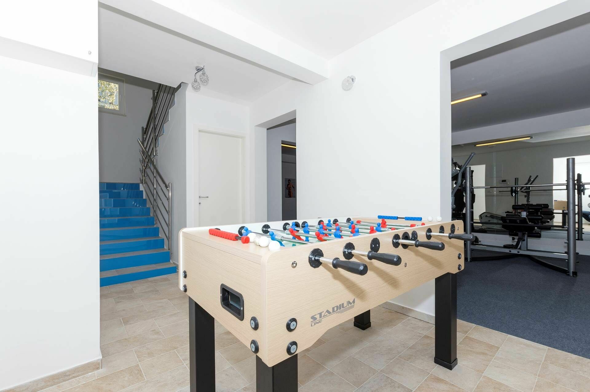 Wenn Sie eine exklusive Ferienvilla in Kroatien suchen, um einen Traumurlaub zu verbringen, dann ist Villa Mermaid genau das Richtige für Sie! Mit seinen 4 Schlafzimmern und seinen großen vielen Gemeinschaftsbereichen bietet dieses prächtige Anwesen Platz für bis zu 9 Personen. Das Haus erstreckt sich über zwei Etagen, ist geschmackvoll und elegant eingerichtet und bietet seinen Gästen den modernsten Komfort wie Klimaanlage, Internetzugang durch W-LAN, eine sehr gut ausgestattete Küche mit neuesten Haushaltsgeräten und ein Wohnzimmer. Abgerundet wird die Inneneinrichtung durch ein Fitnessstudio und einen Spielbereich mit Billard und Tischtennis.