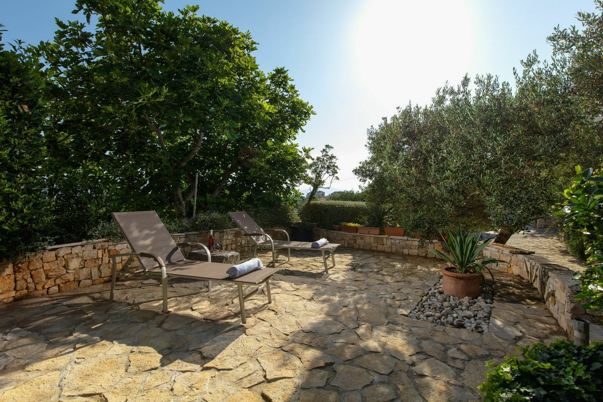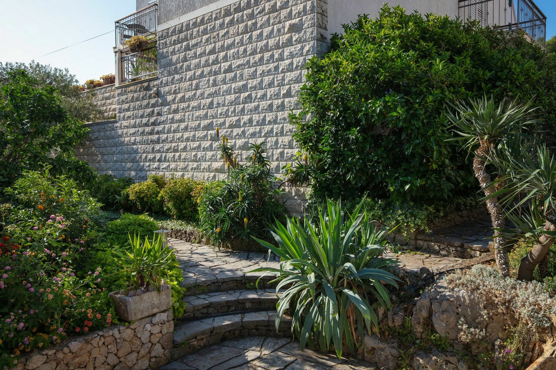 Im Aussenbereich steht den Gästen ein gepflegter Garten zur Verfügung, mit vielen Pflanzen und typischen Blumen der Insel. Ein überdachter Bereich mit Grill, Holzofen, Tisch und Stühlen gibt die Möglichkeit, stilvolle Essen im Freien zu organisieren und das wunderbare Klima der Insel zu geniessen.