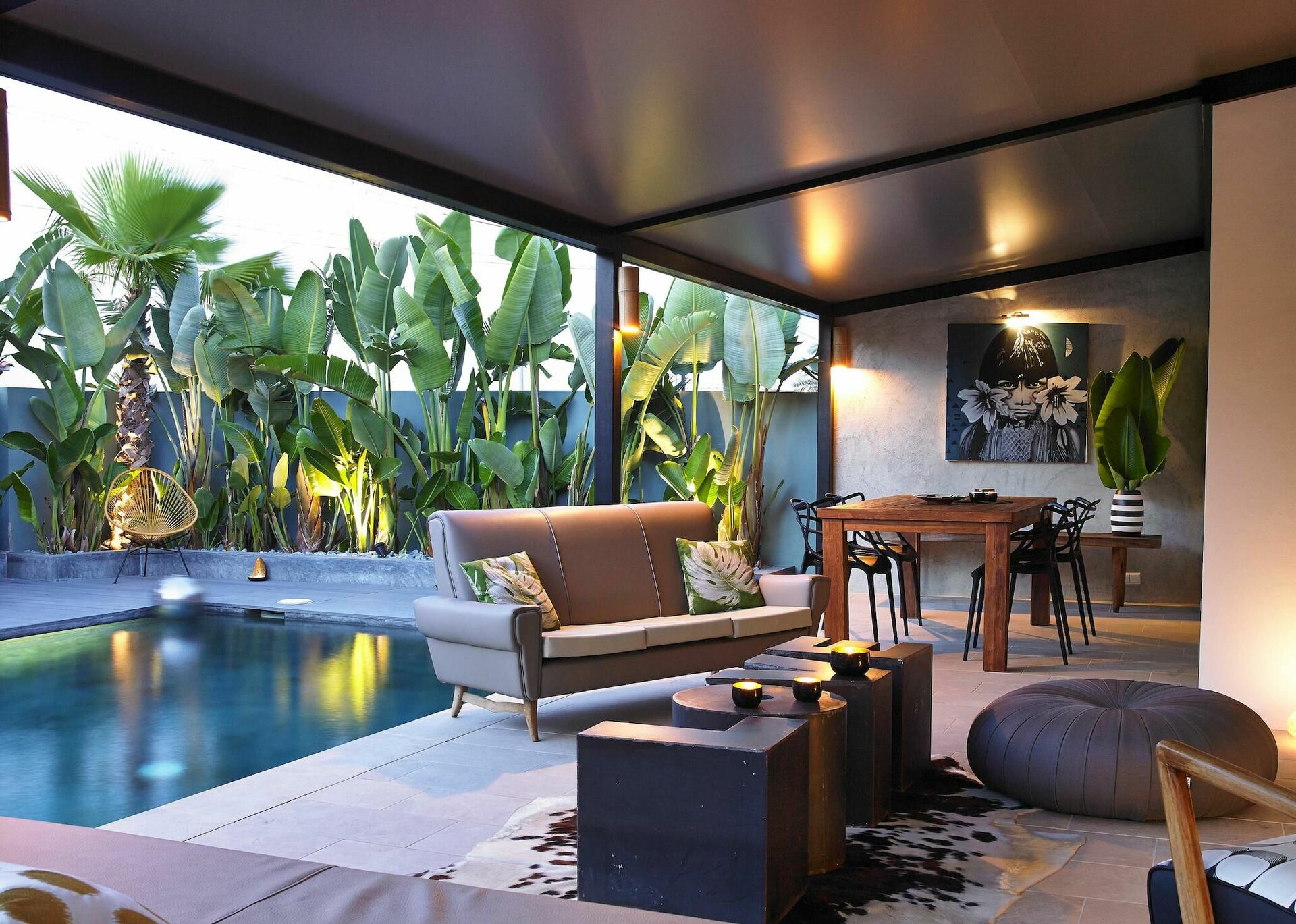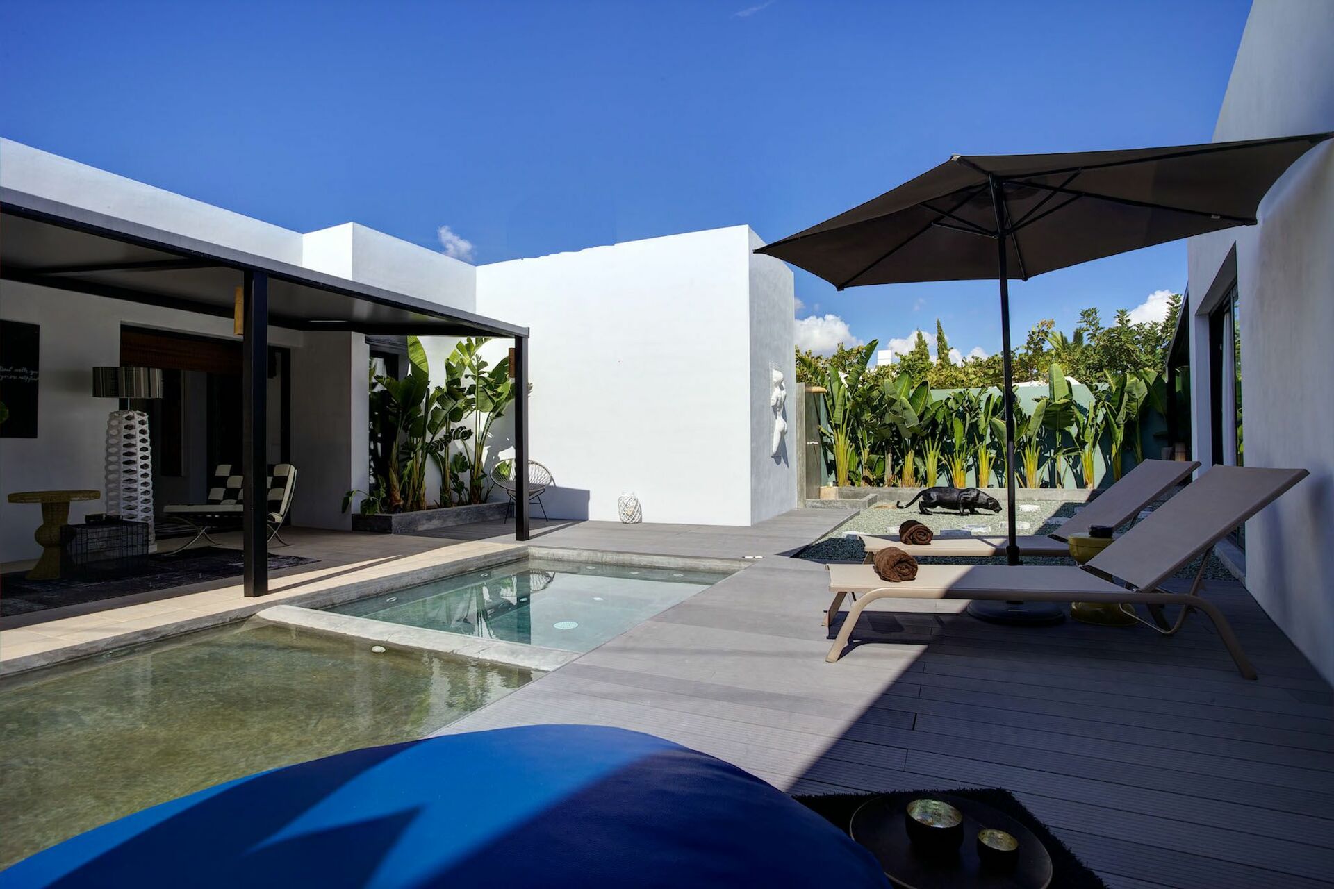 Im Aussenbereich bietet die Villa Savonne eine grosse Sonnen-Terrasse mit einem fantastischen Schwimmbad, das den Gästen exklusiv zur Verfügung steht. Es ist der perfekte Ort, um an heissen Sommertagen auszuruhen und sich abzukühlen. Ein Essbereich mit Tisch und Stühlen macht es möglich, die Mahlzeiten im Freien zu sich zu nehmen und einen Aperitif bei magischem Sonnenuntergang zu geniessen. Ein Whirlpool rundet die Ausstattung der Villa ab und bietet den Gästen komplette Erholung.