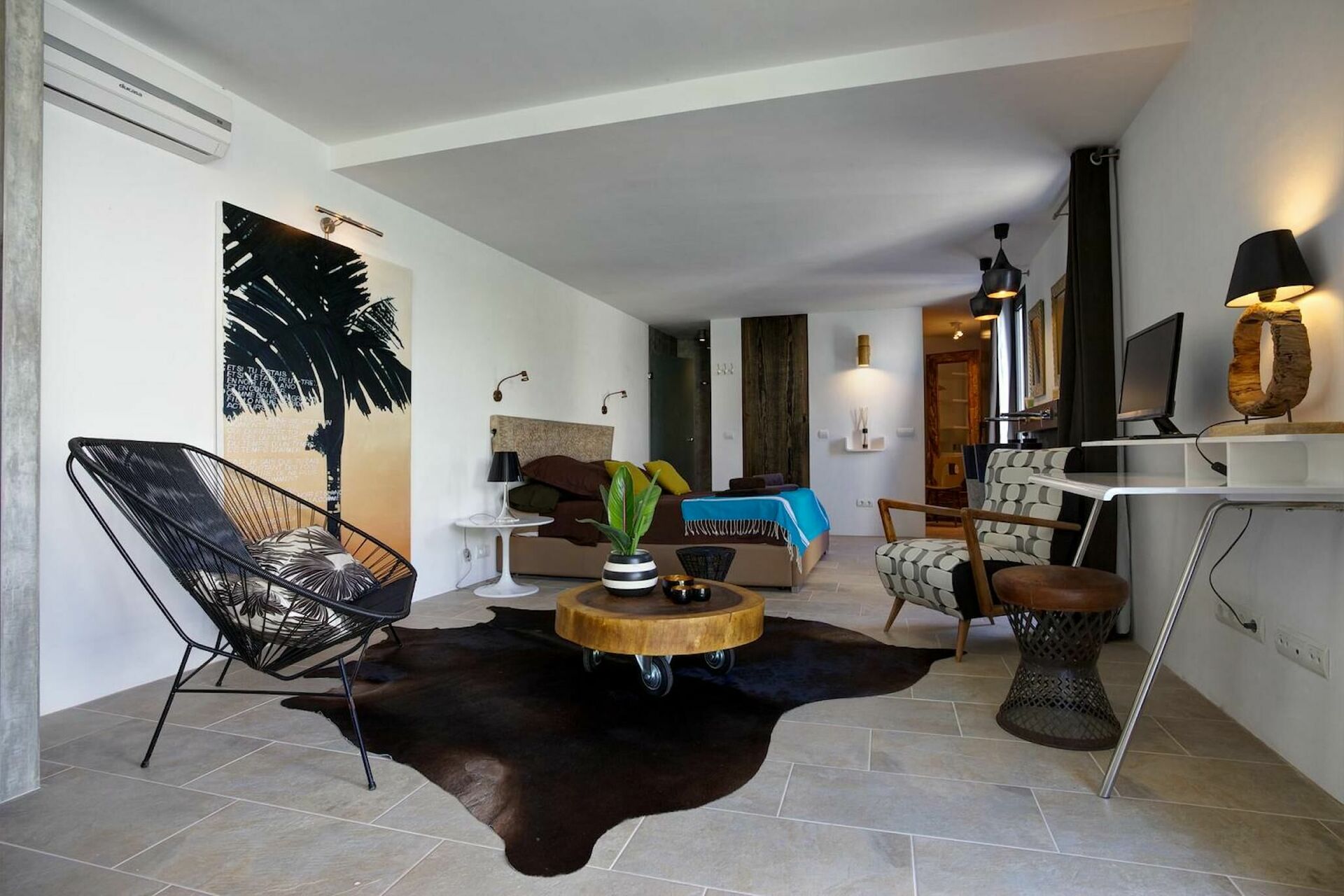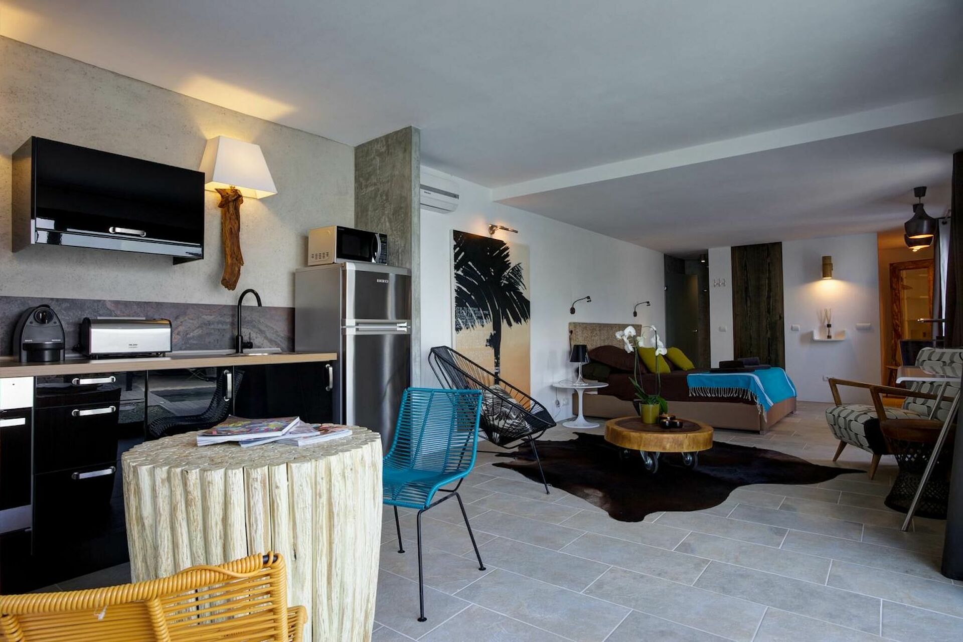 Monolocal, 50m2, mit Küche und Essbereich und King-Size-Bett, privates Bad mit Badewanne und Dusche.