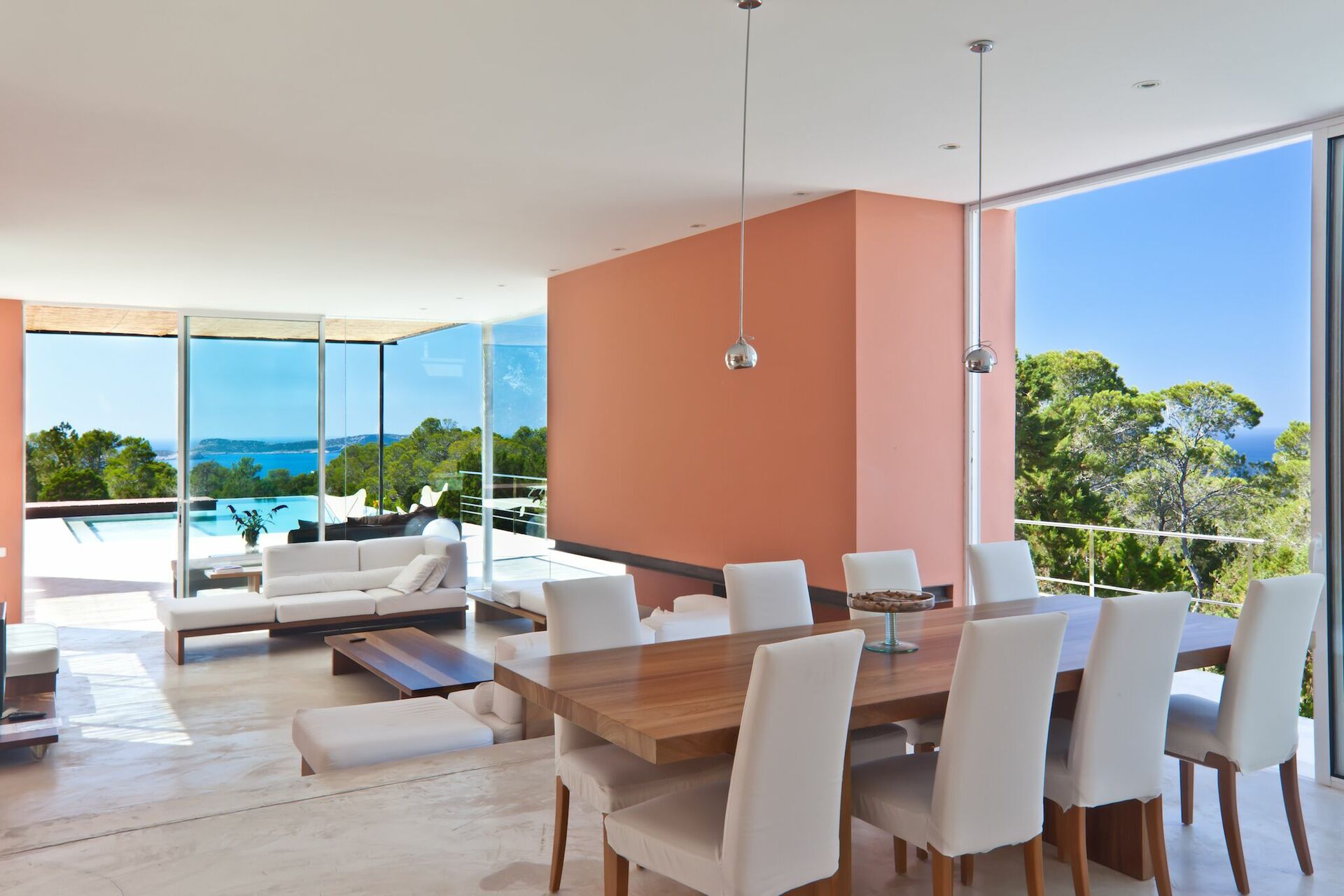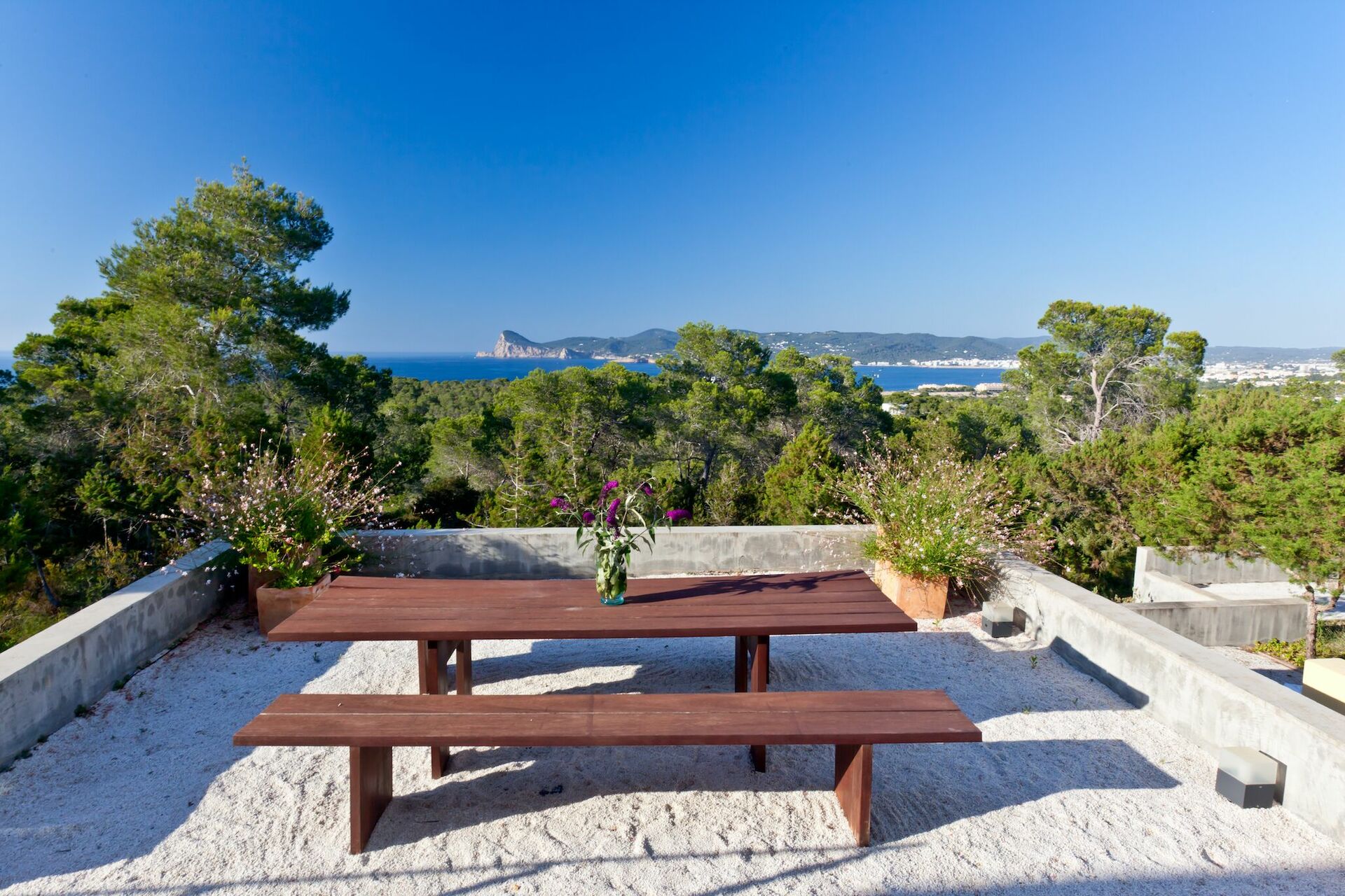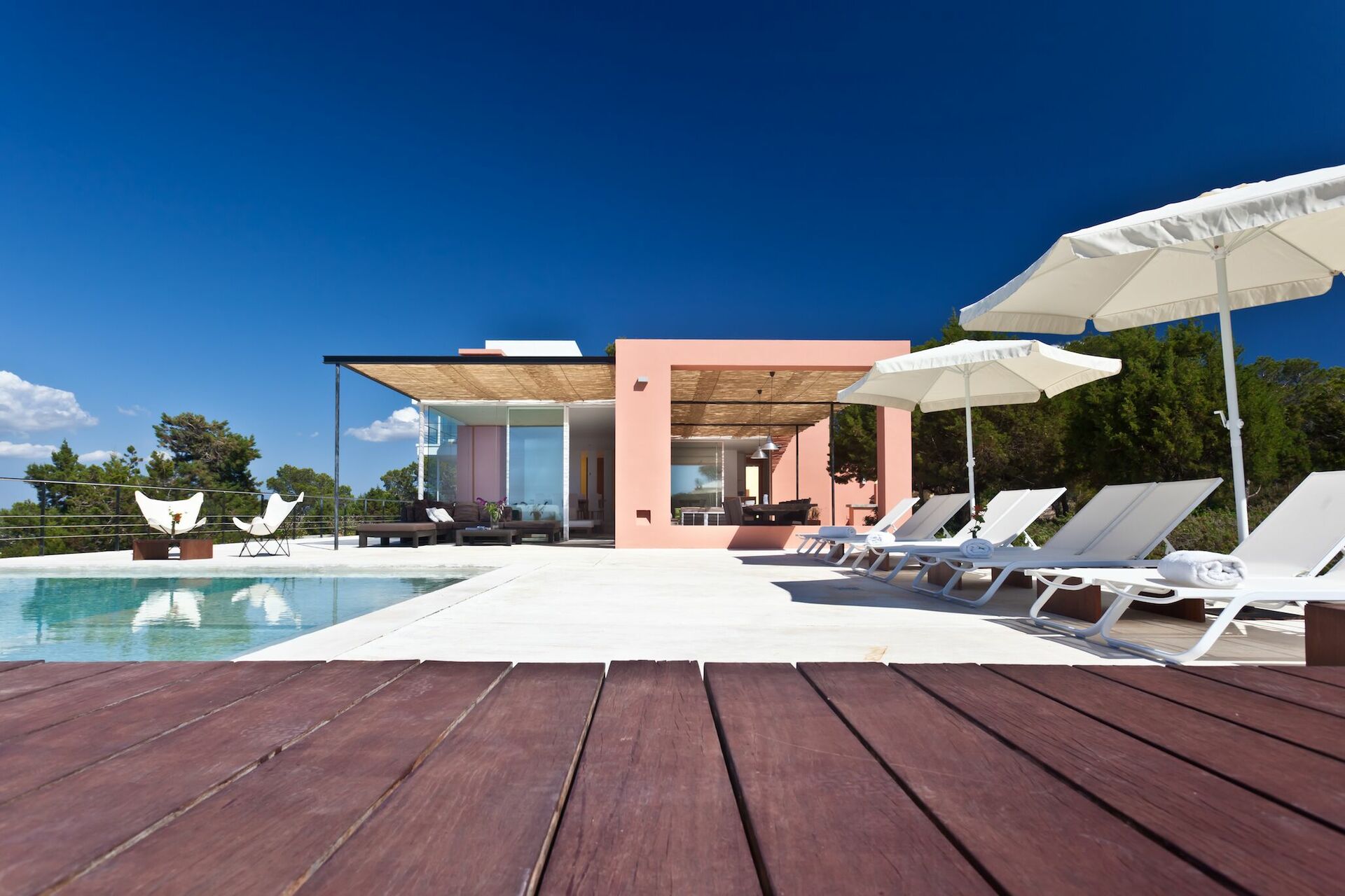 Luxusvilla auf Ibiza zu mieten, direkt über dem Meer in Panorama- Position, von 37 km2 Wald umgeben.