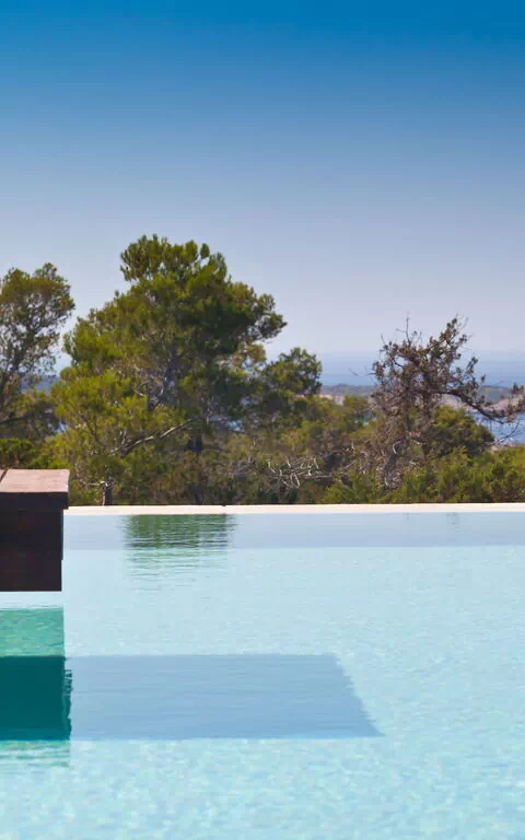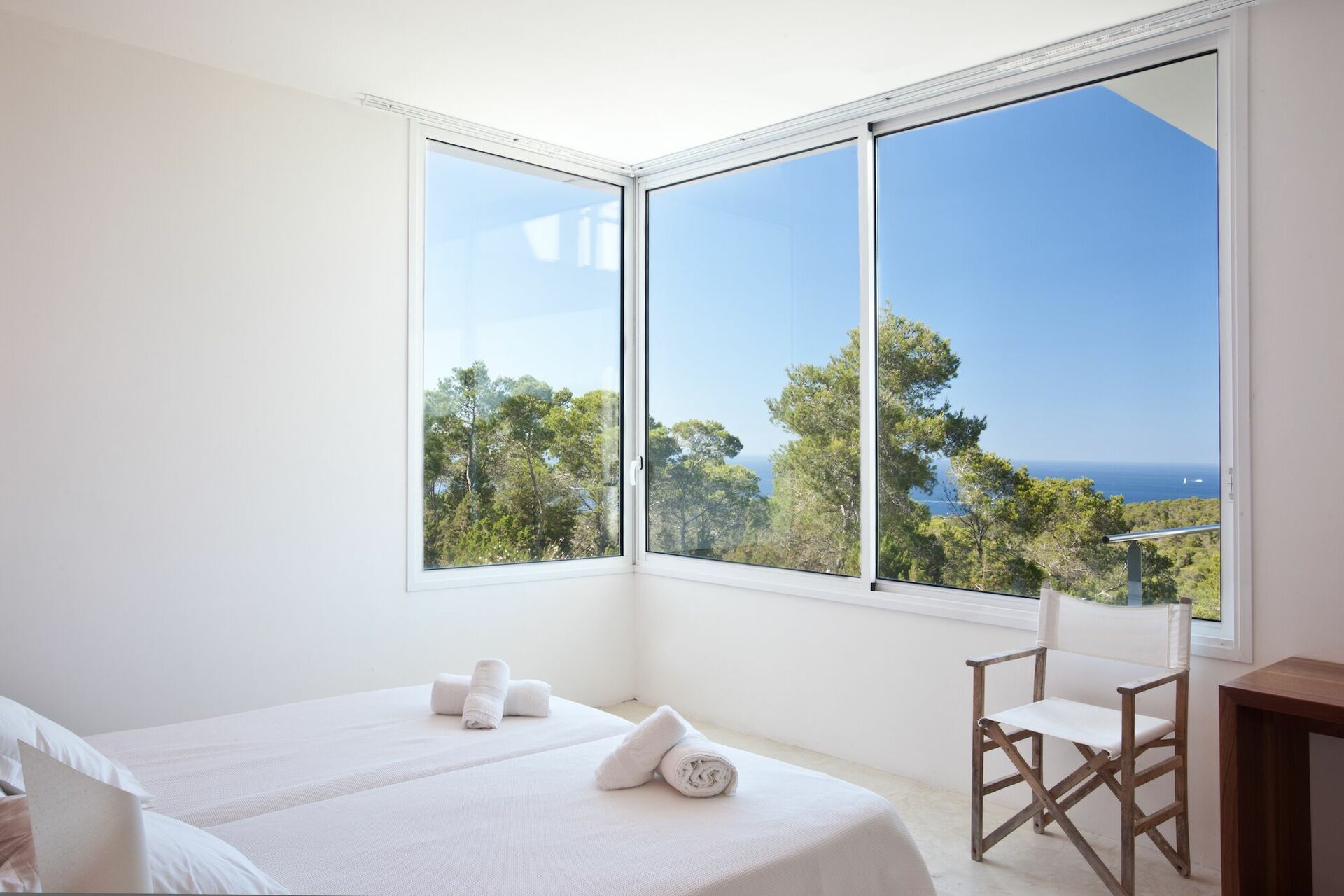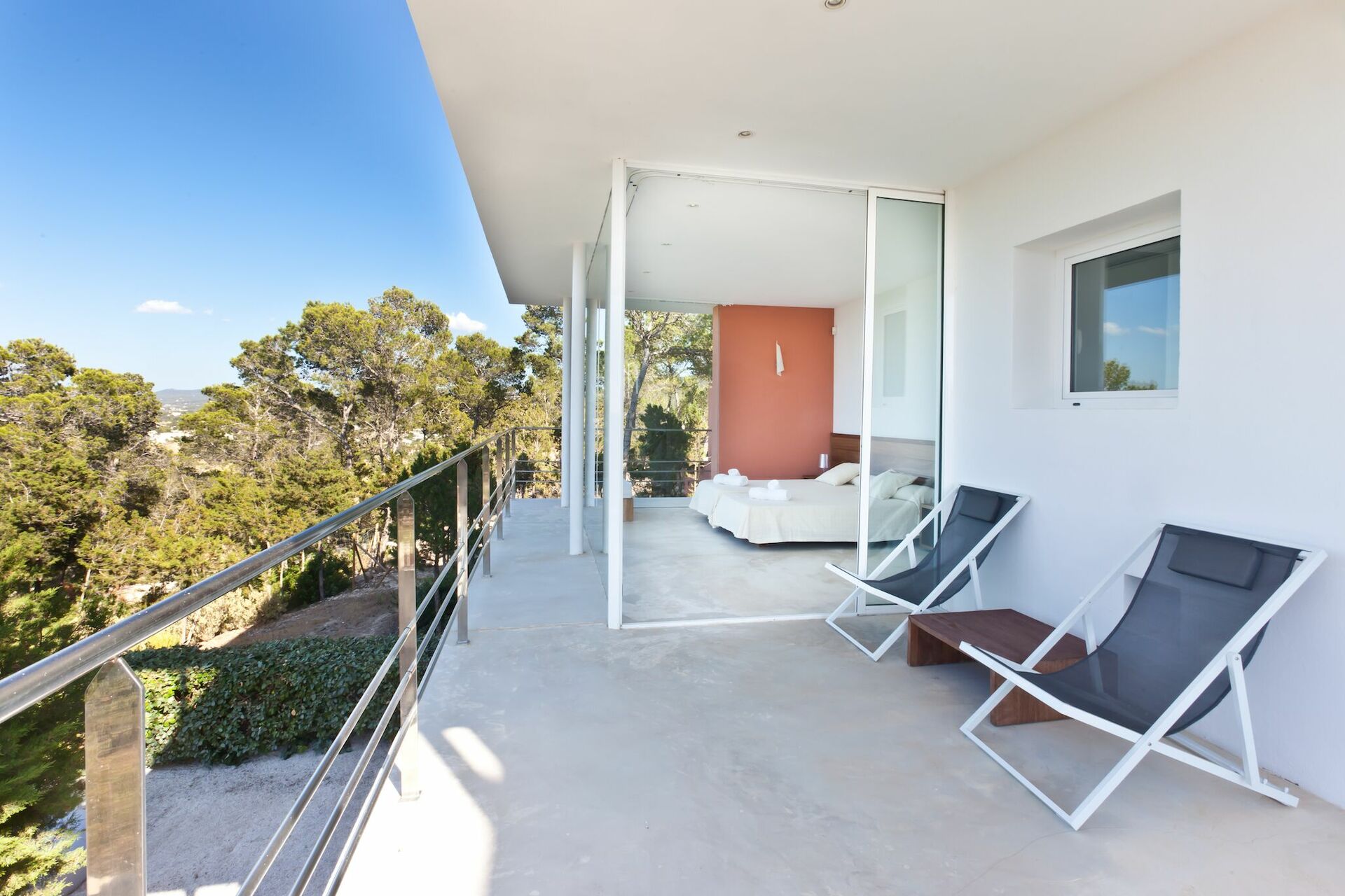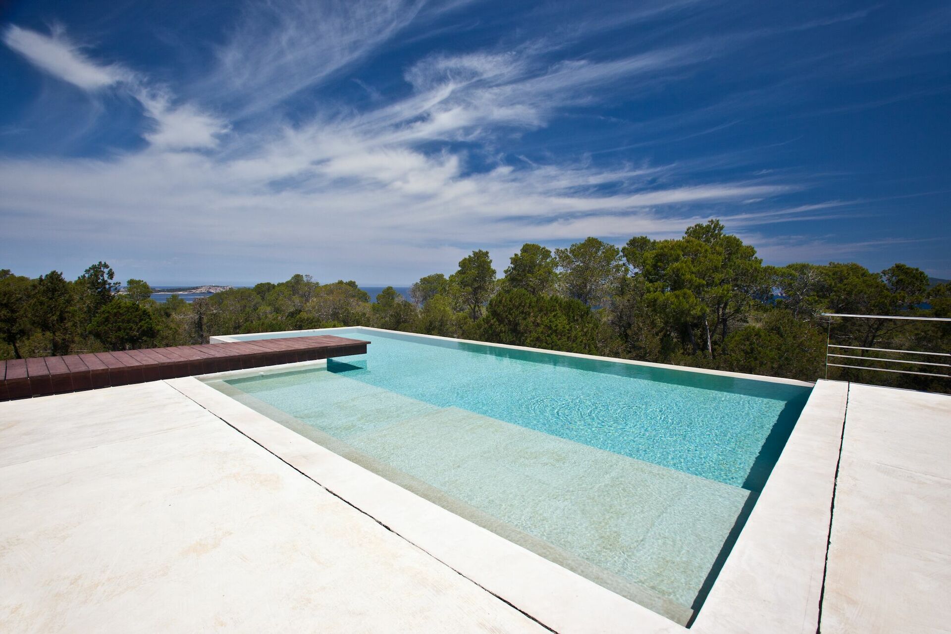 Luxusvilla auf Ibiza zu mieten, direkt über dem Meer in Panorama- Position, von 37 km2 Wald umgeben.